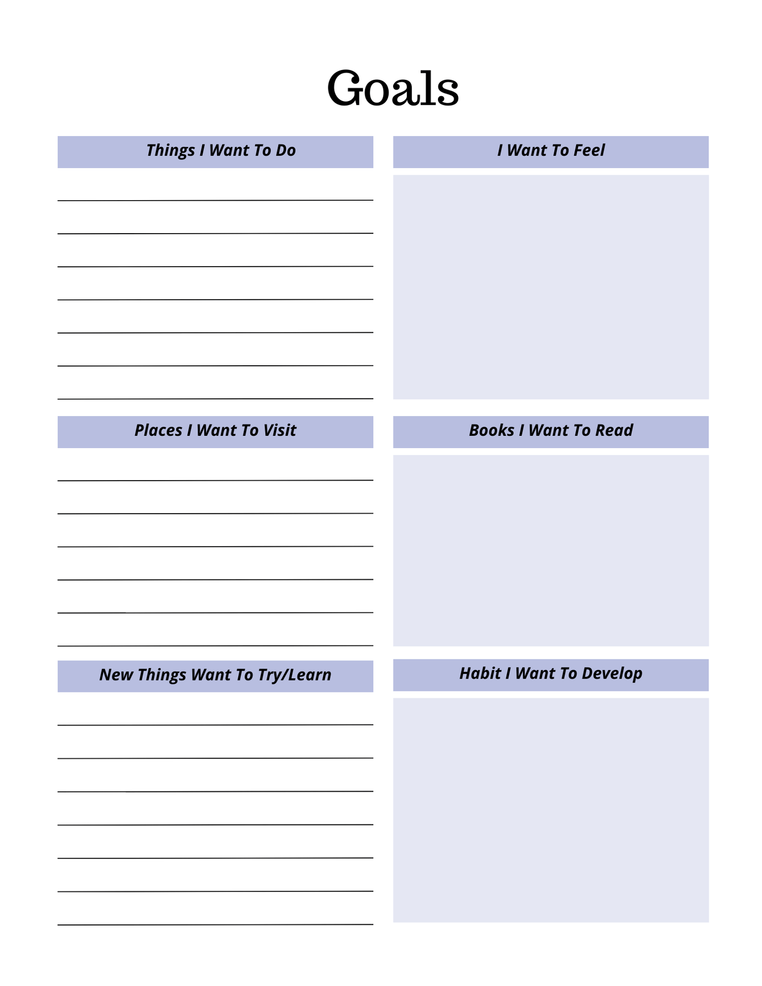- Goalsetting pages: Define and break down your aspirations into actionable steps, creating a clear roadmap to success.
