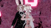 Clothes: Bodysuit, Fishnets, Heels, Collar, Cuffs, Sleeves, Dress shoes,