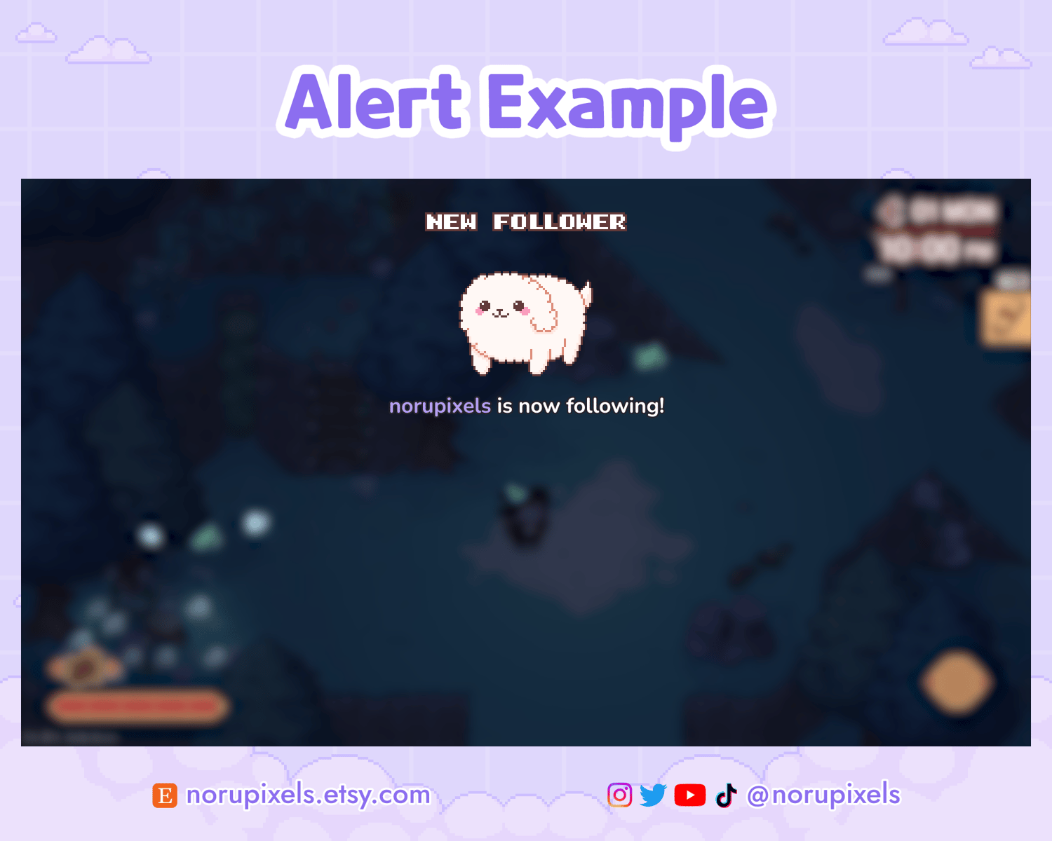 - New Follower alert (size: 512 x 324px). No text version size: 512 x 260px.