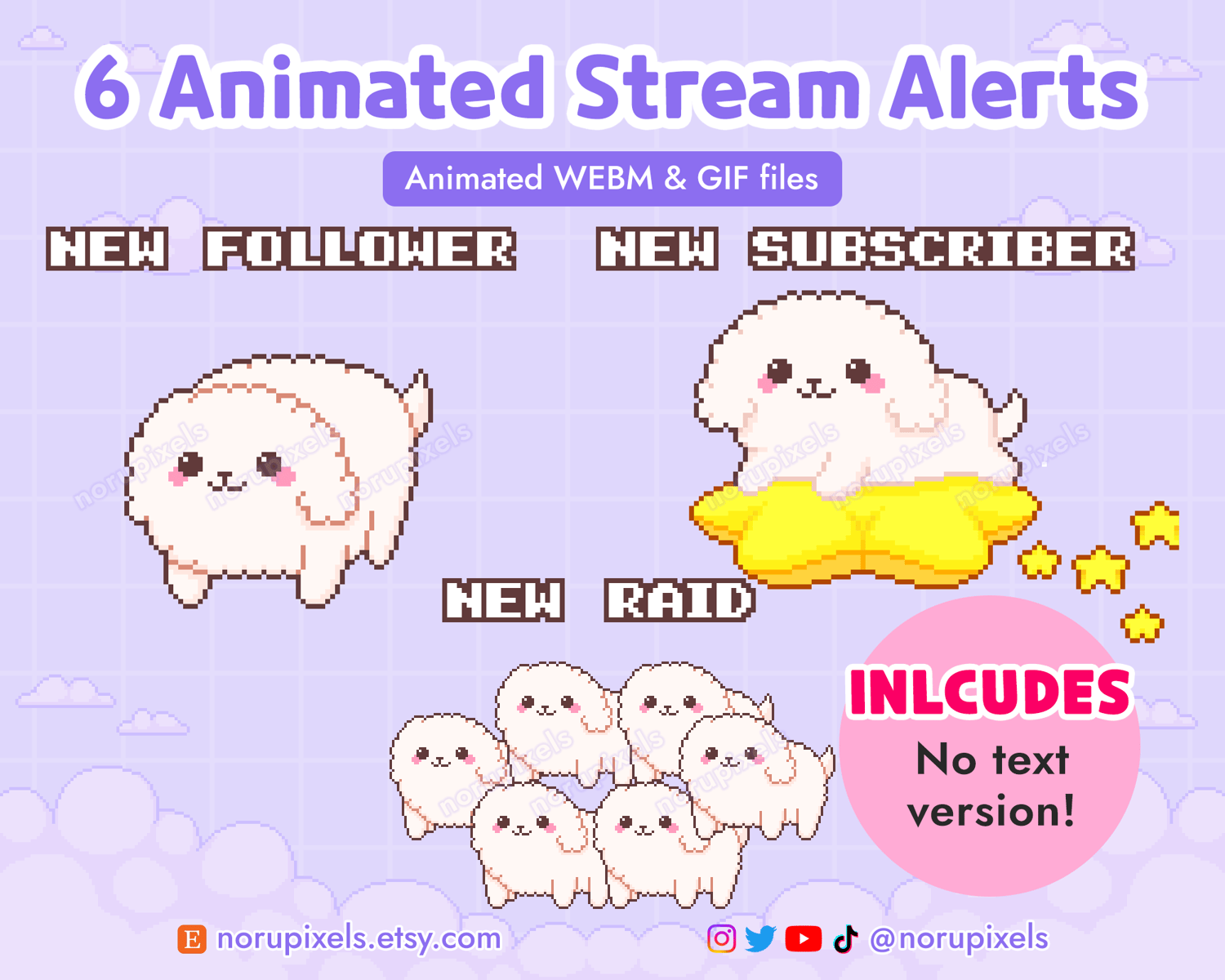 6 animated stream alerts ready to download. After purchase you will receive a .ZIP file. Unzip this to access: