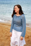 A saucy lass deserves an easy-to-knit and easy-to-wear pullover for warmer weather. The drape of the finished linen fabric will win you over, keeping you cool yet covered. This sweater was inspired by the shifts that all women used to wear, but now you can show it off. With picot edgings and drawstrings at neck and wrists, you’ll look just a bit fancy while feeling supremely comfortable.