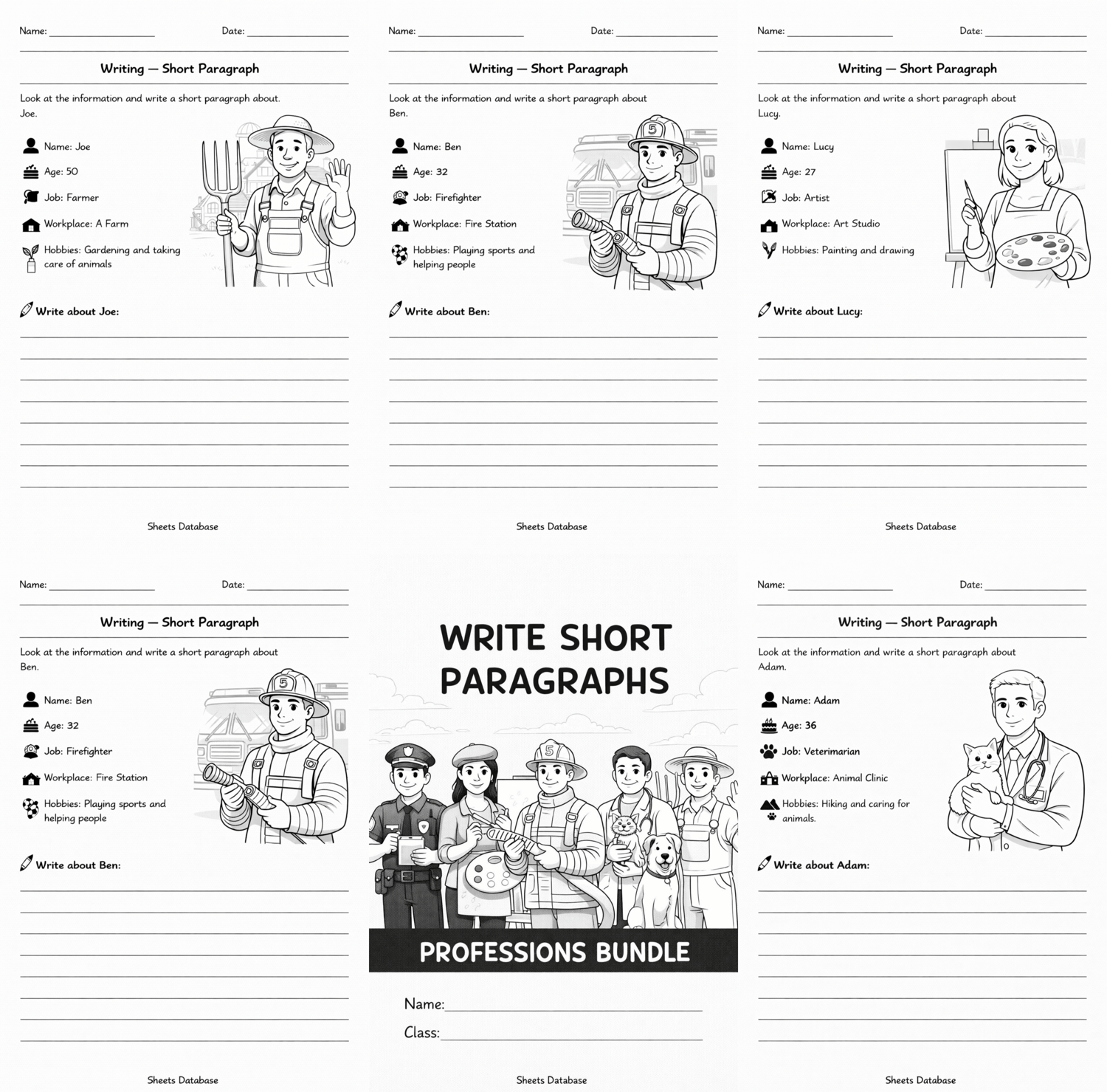 Writing Short Paragraphs – People & Jobs Worksheets (Grades 2–4)
