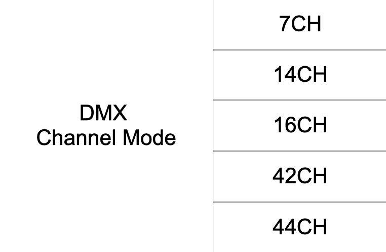 * Verifique, desde el menú del display, que muestre los modos dmx: 7CH, 14CH, 16CH, 42CH y 44CH.