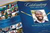 Victory Funeral Program Template for Canva - Blue and Gold | Celebration of Life | 8 Pages | Bi-fold to 8.5x11 inches