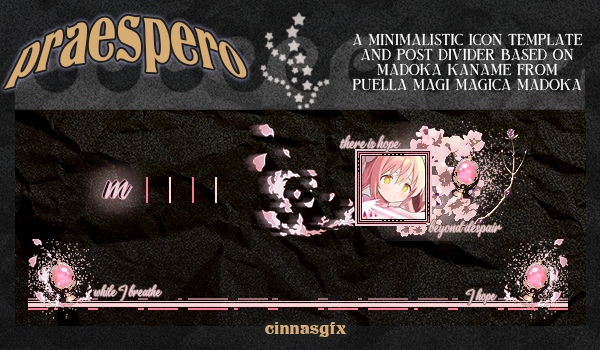 A minimalistic icon template & post divider based on Madoka Kaname from Puella Magi Magica Madoka, alternative to voluspa. There are a few blockquotes on this template while being wide enough to cover the post width. The image used in the preview is not included with the psd file. Easy to edit if you're familiar with the following: smart objects, layer styles and layer masks.