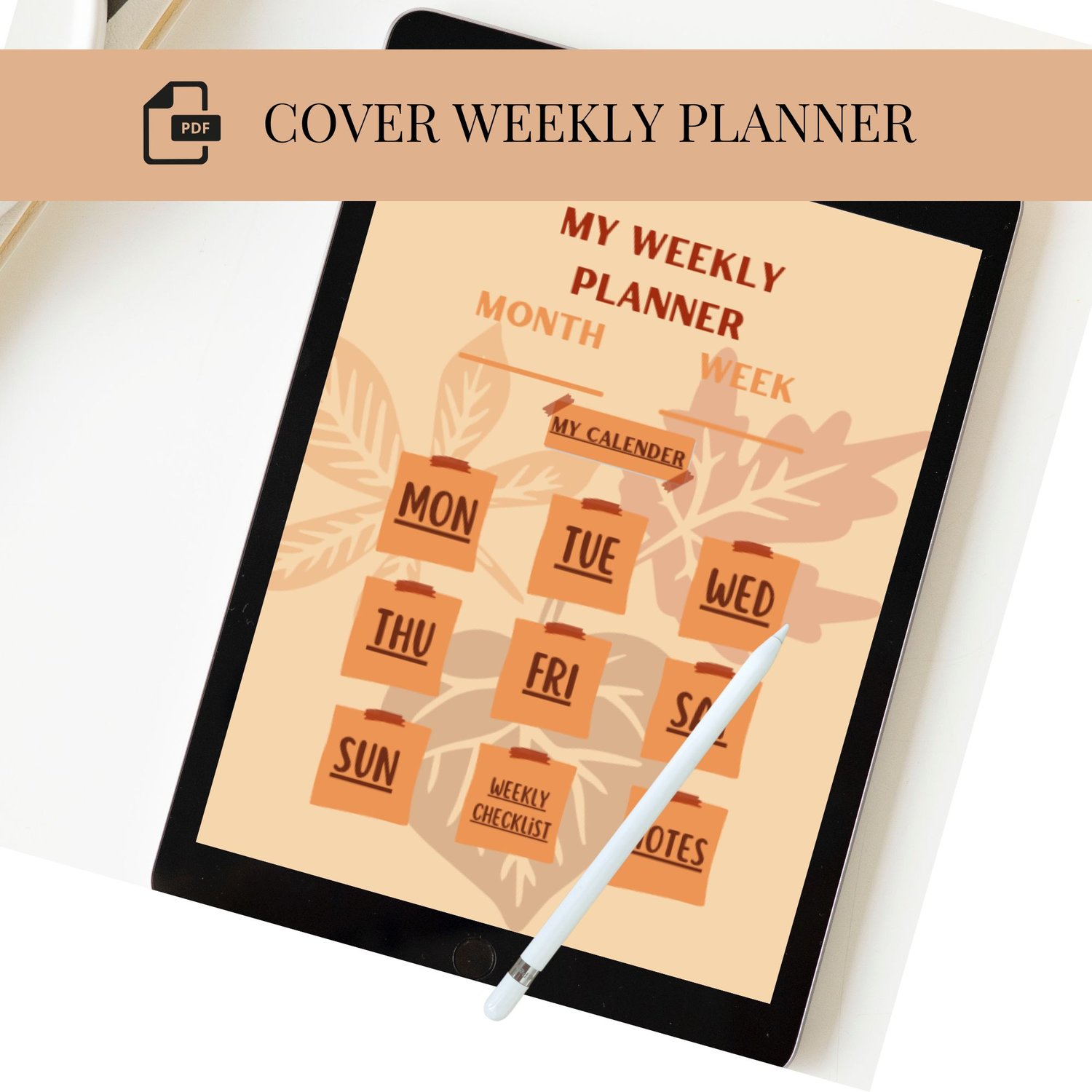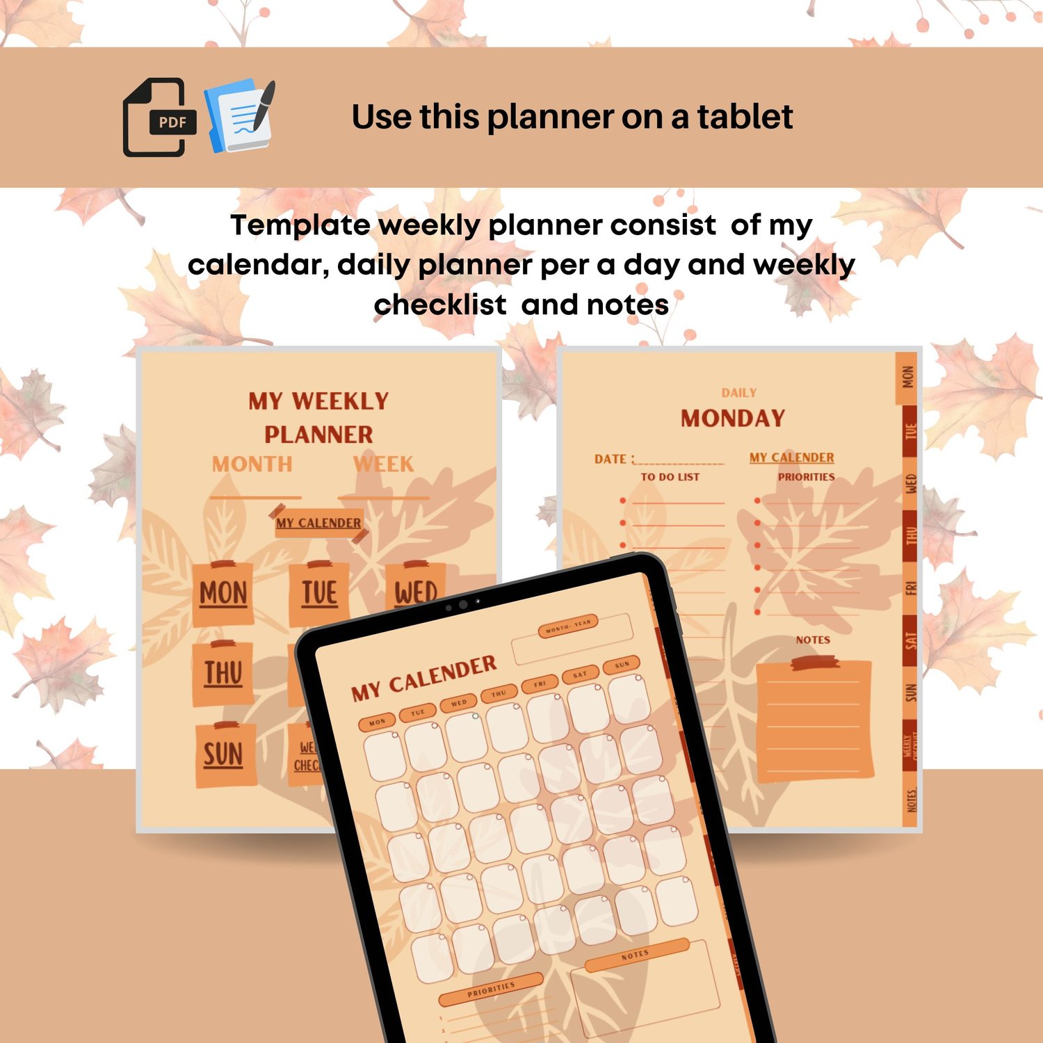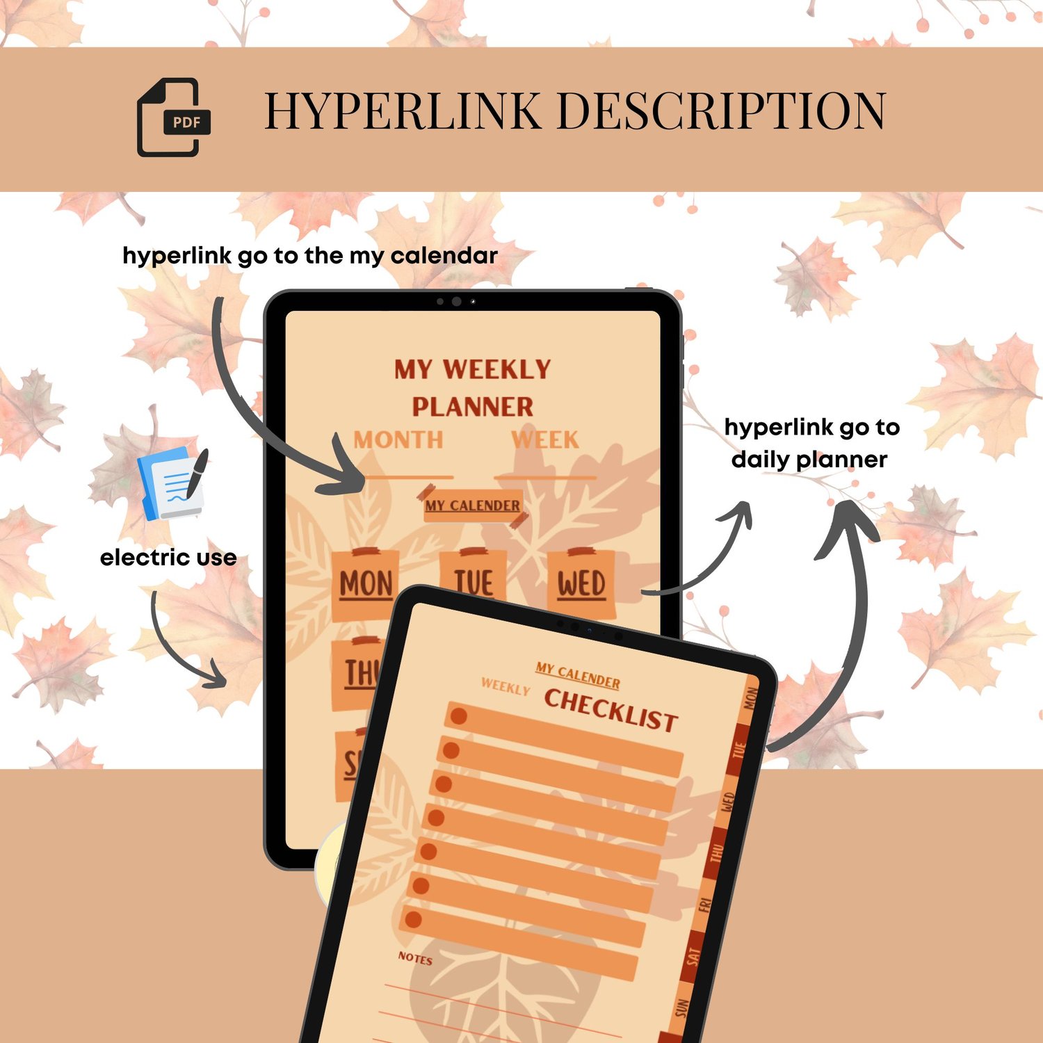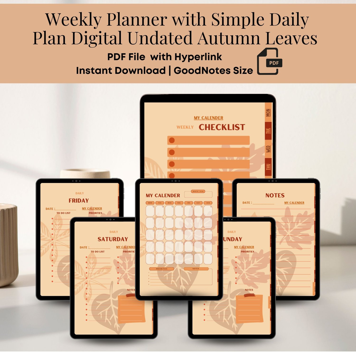 Weekly Planner with Simple Daily Plan Digital Undated Autumn Leaves for GoodNotes [Instant Download]