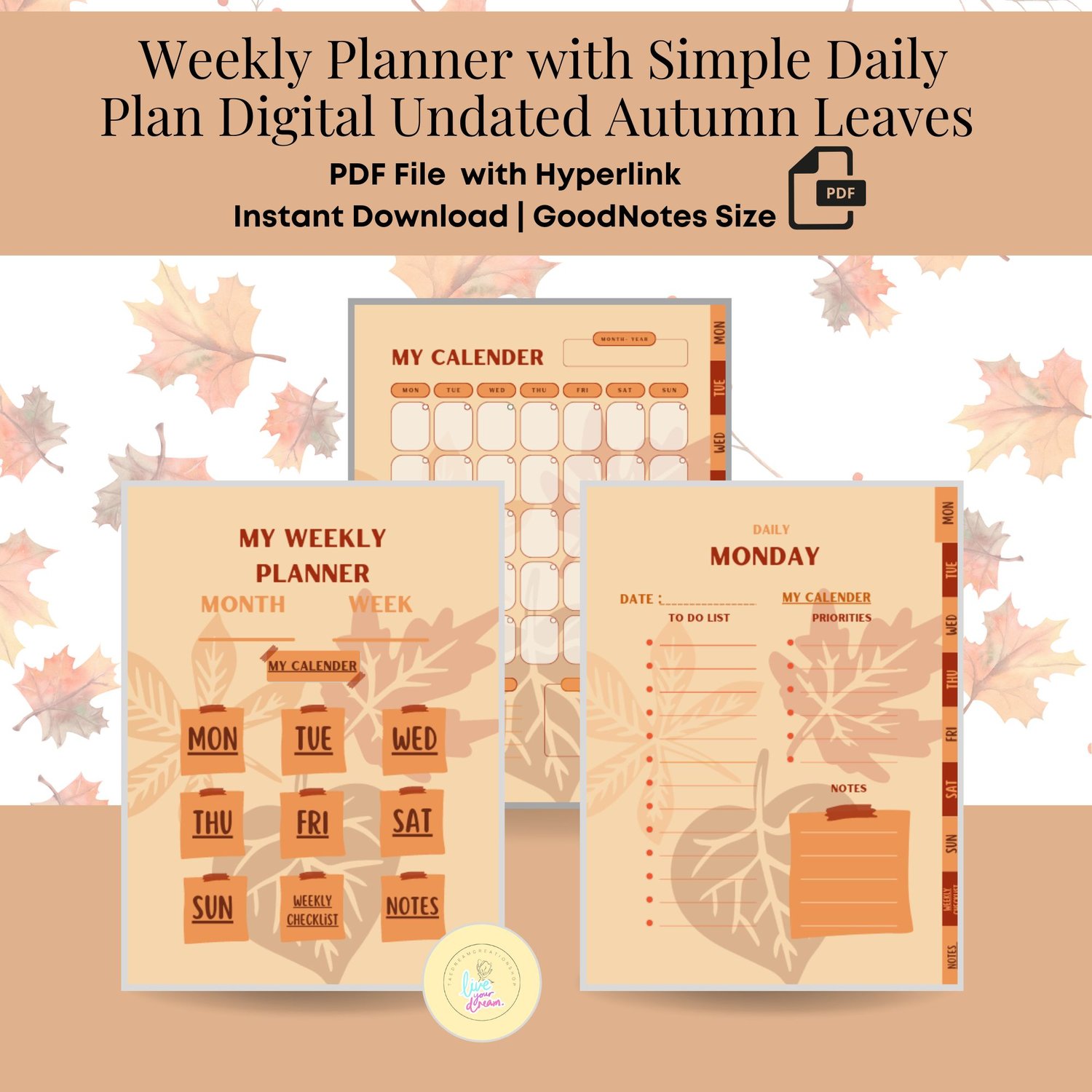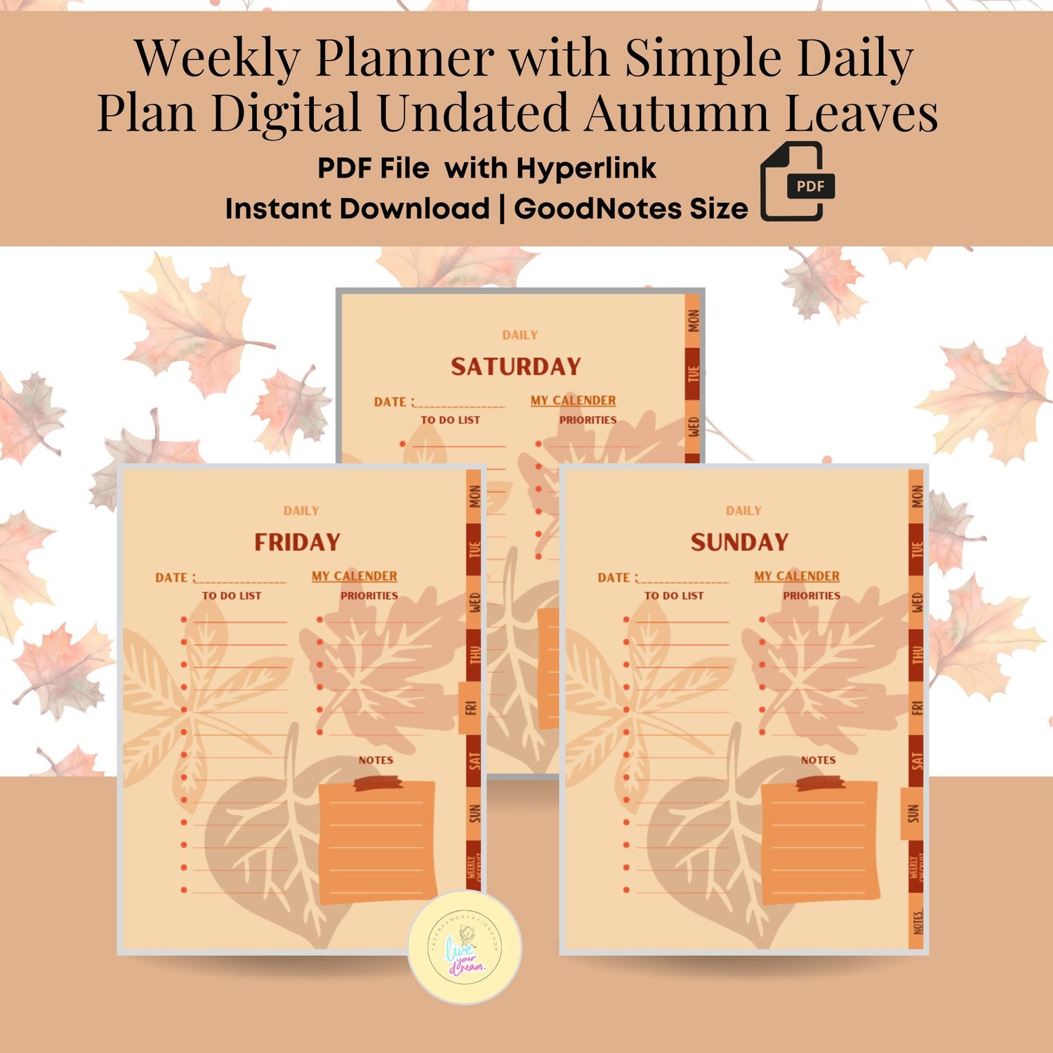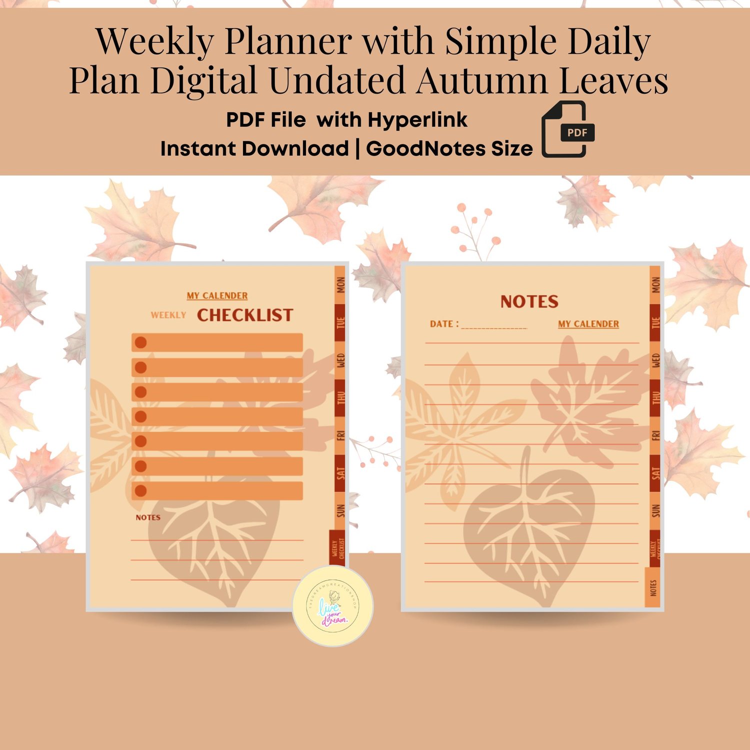 Click the button to get access to the Weekly Planner with Simple Daily Plan Digital Undated Autumn Leaves for GoodNotes [Instant Download]