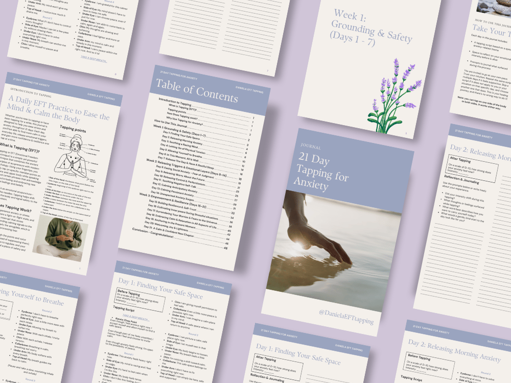 Whether you’re new to tapping or have been tapping for a while, this journal is designed to help you ease stress and anxiety throughout 21 days. Each day, you’ll be able to find more calm in your everyday life, release emotional triggers, and gain more confidence & resilience one tap at a time.
