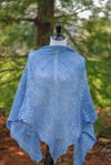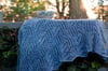 Three different lace patterns merge and flow into one another to make a large, lacy, top-down triangular shawl.
