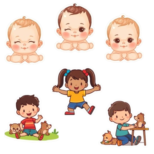 This cute baby kids sticker set comes as a ZIP file containing high-quality PNG stickers with transparent backgrounds.