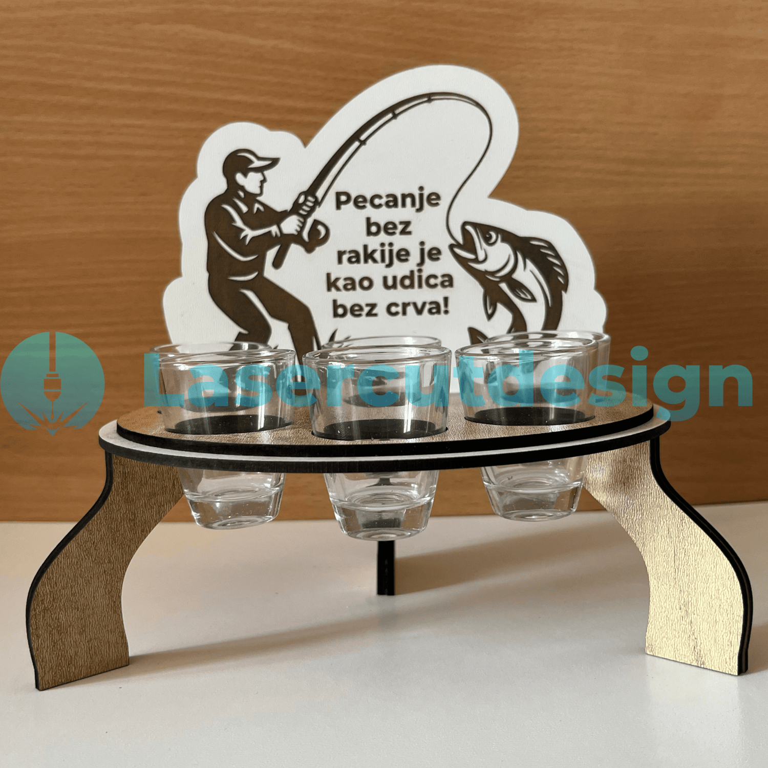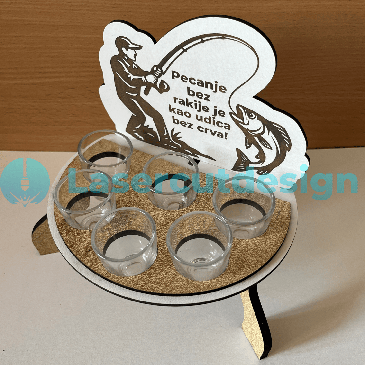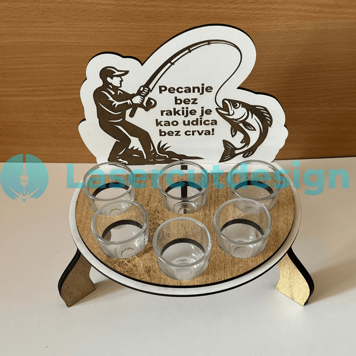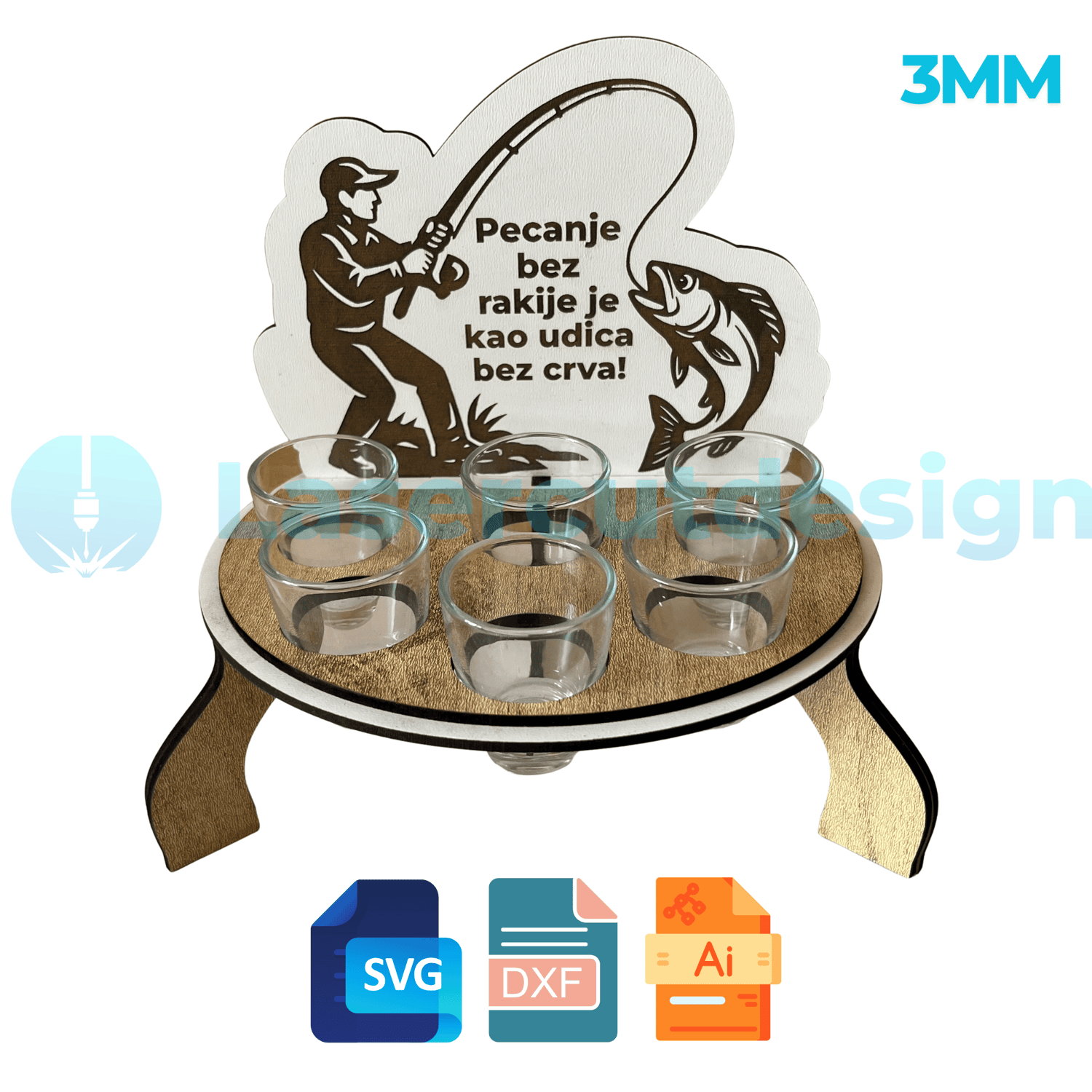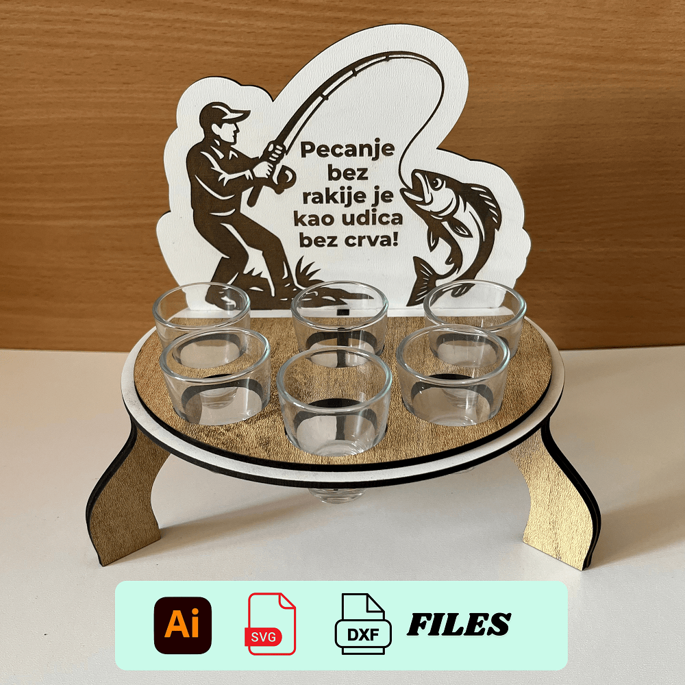 Fishing Shot Glass Stand | SVG DXF AI | 6 Glass Holder with Engraved Fisherman | 3mm Laser Cut Files