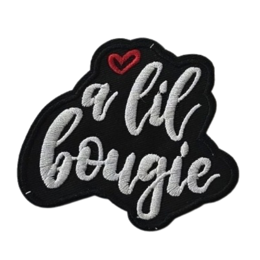 - Embroidered patch with “A Lil Bougie” in stylish lettering