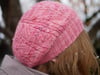 Tricoté du bord-côtes vers la couronne, il met en avant un joli motif à mailles croisées répété six fois en rond, inspiré par l’étoile des vents, pour rester dans la thématique. Il est affublé d’un petit ajustement front pour épouser parfaitement la tête, plus large au niveau du front qu’au niveau de la nuque. On peut le tricoter version bonnet slouchy ou bien béret.