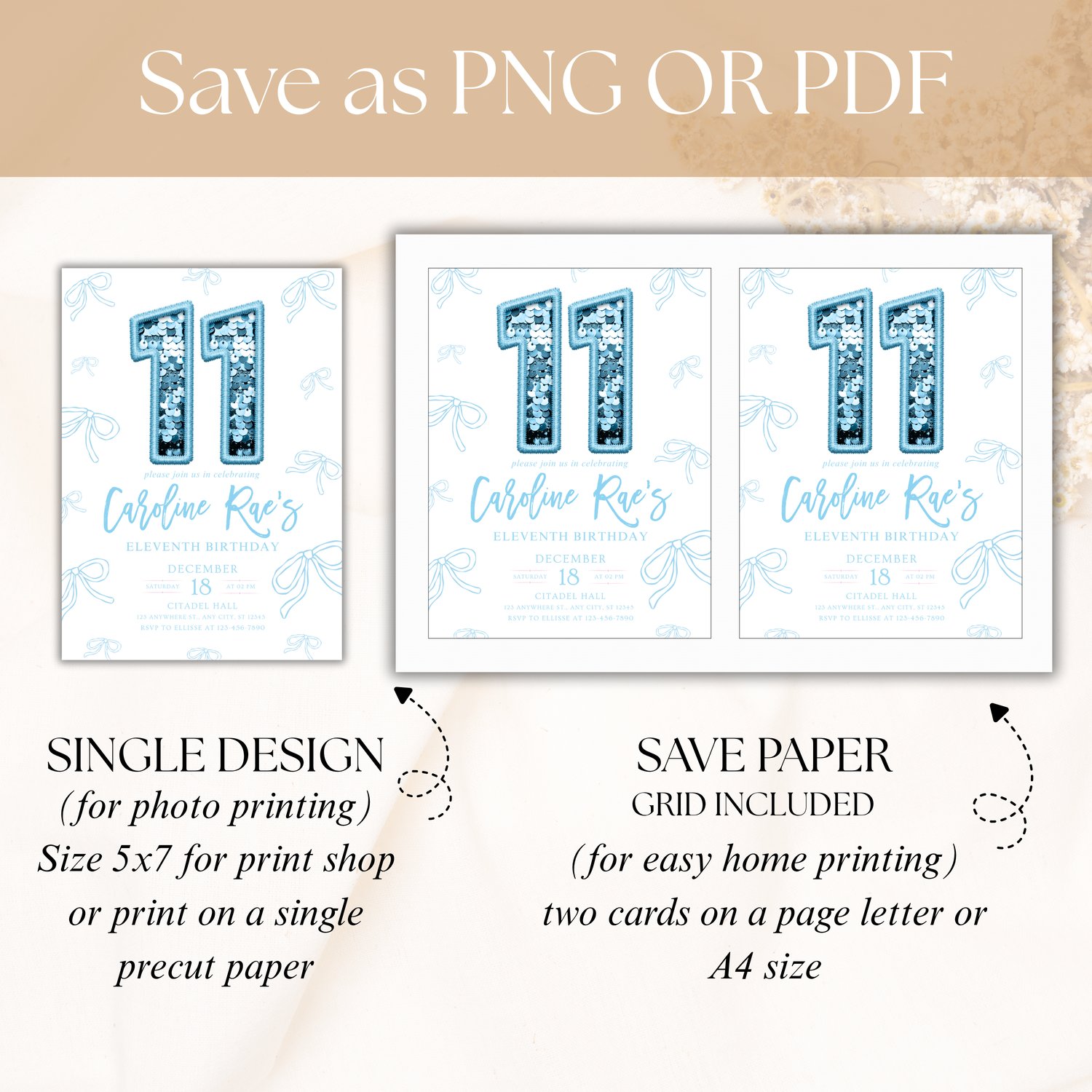 5x7 in Digital Invitation file, electronic invitation