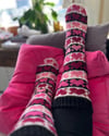 Heart-Shaped Soxx are full of happy rock’n roll attitude with their black-and-white stripes and pink, hearty hearts. 🩷