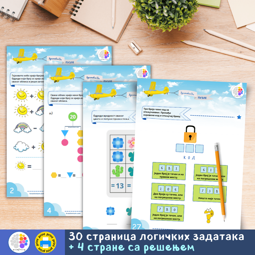NOVA predivna radna sveska sa različitim zanimljivim logičkim zadacima i rešenjima. Pomoći će detetu da razvije pažnju, koncentraciju, logičko razmišljanje, istrajnost, upornost i druge matematičke veštine.