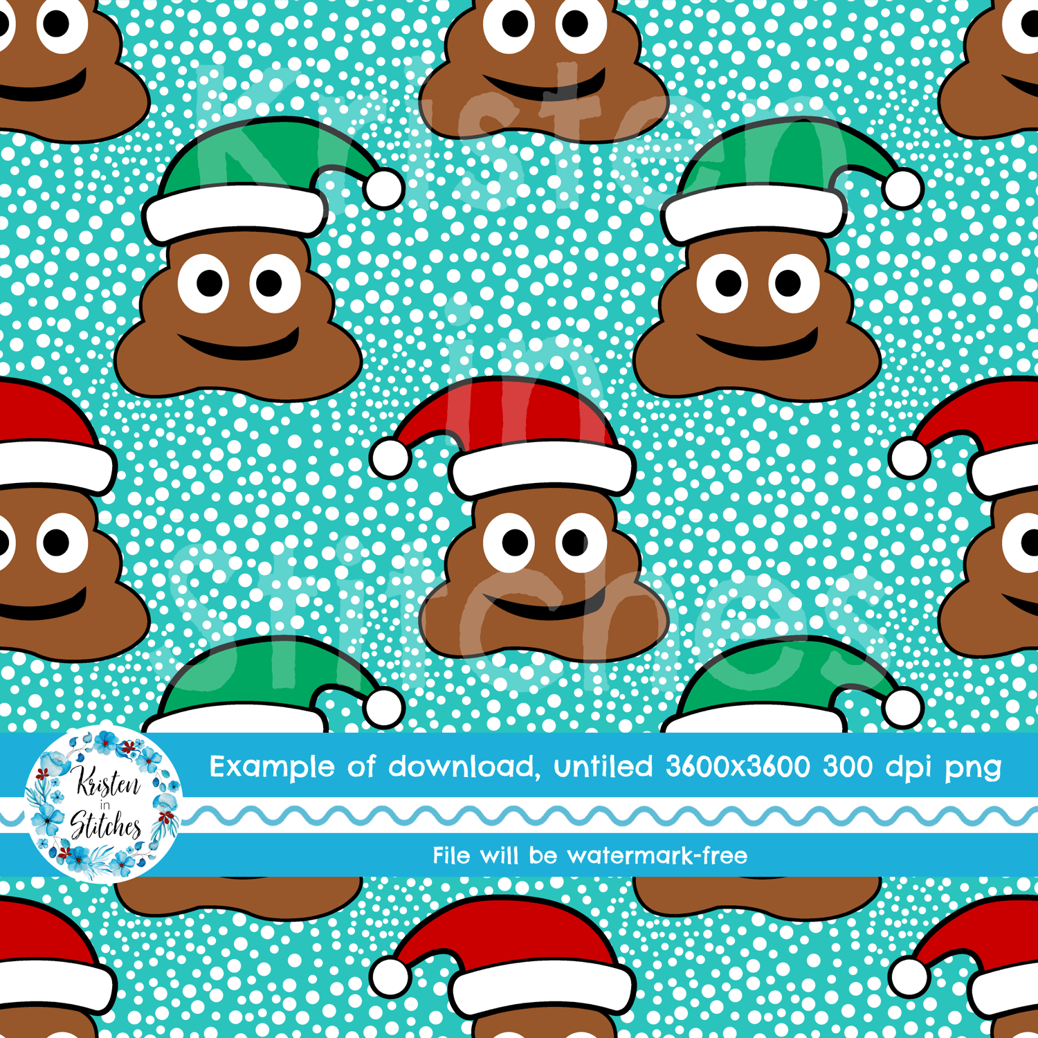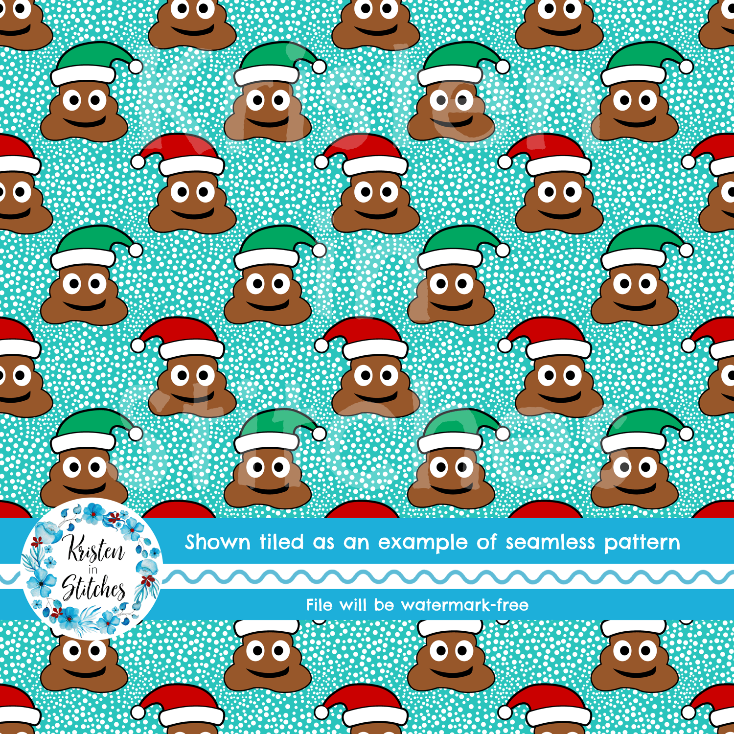Sarcastic Christmas Poop Emoji Santa Seamless Pattern