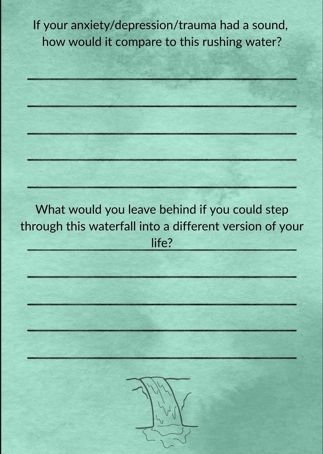• Waterfall-themed reflection prompts