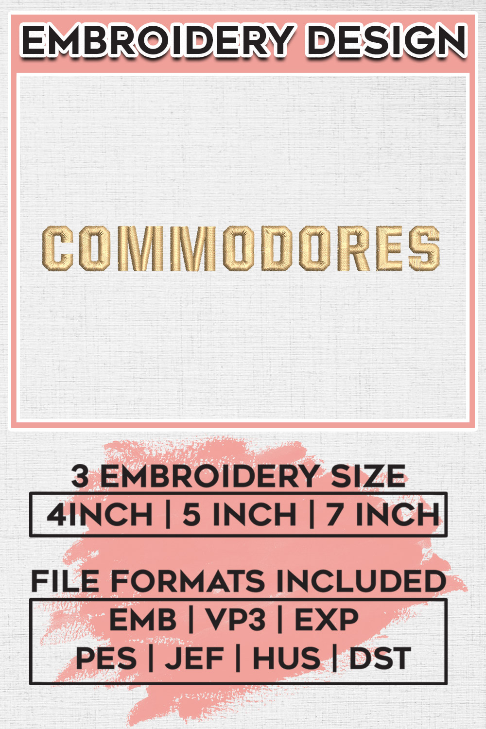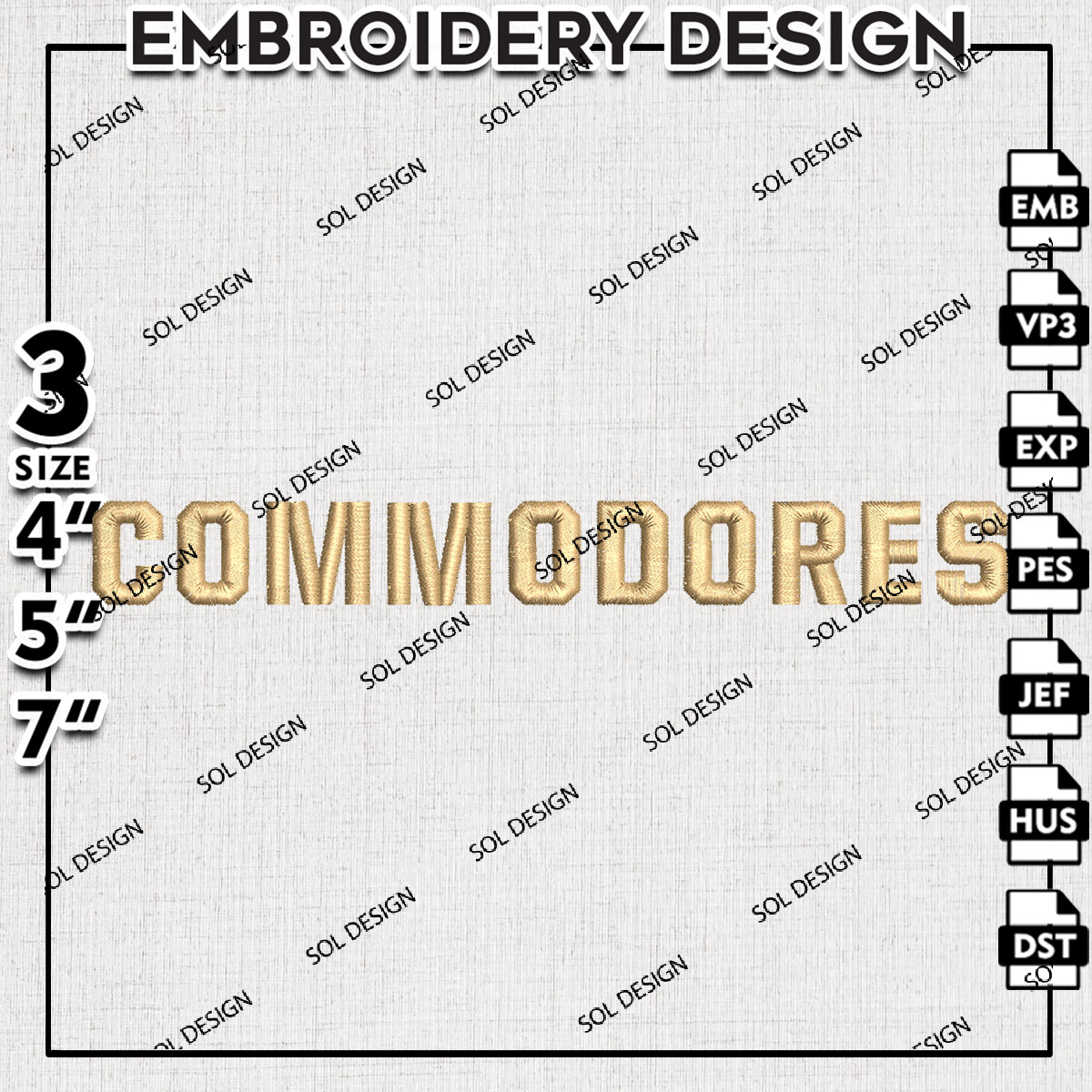 Commodores College Football Team Wordmark Logo Embroidery Designs, NCAA Vanderbilt Commodores Machine Embroidery Files, NCAA Logo embroidery designs, NCAA Vanderbilt Logo, Digital Download