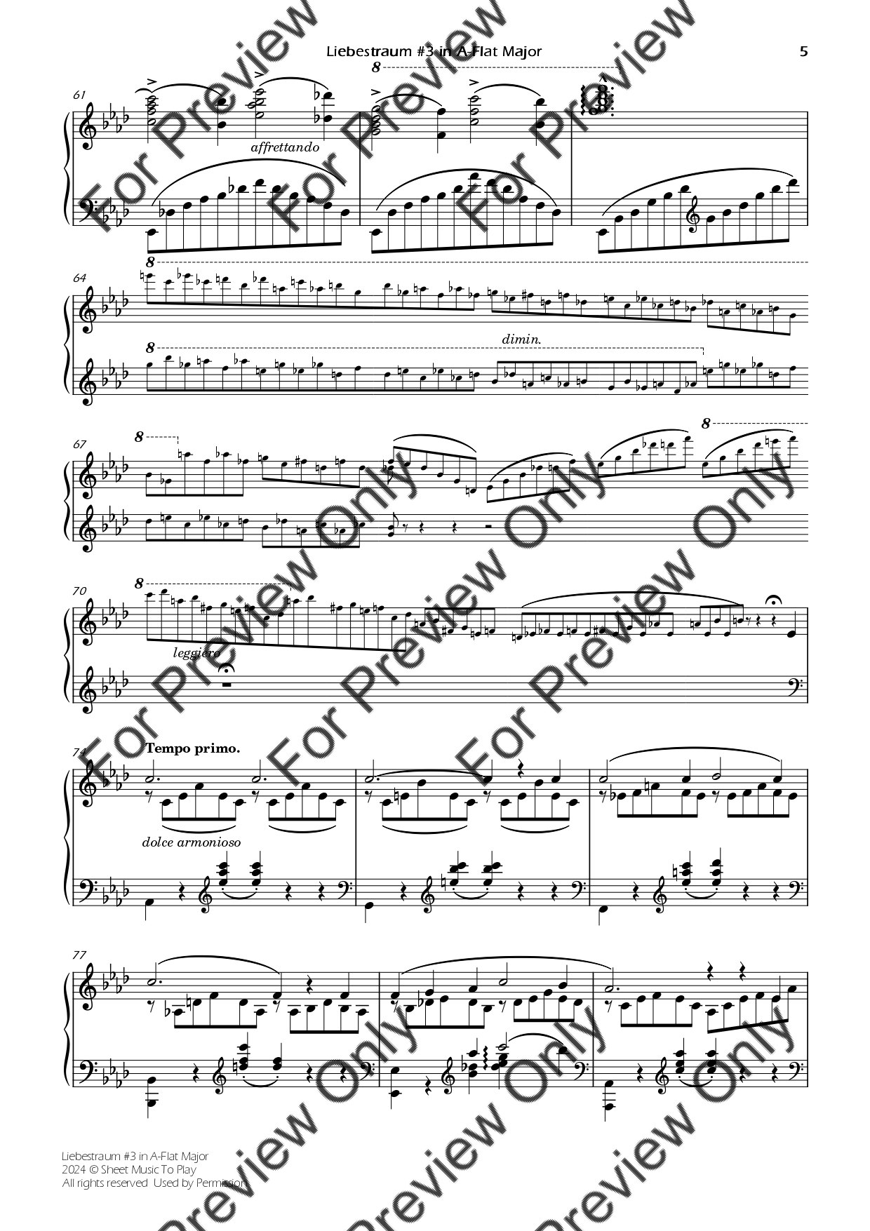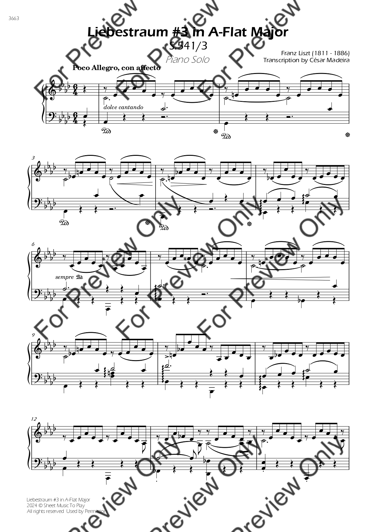 Liebestraum No.3 by Franz Liszt. Arrangement for Piano Solo. With Full Score. Have fun!