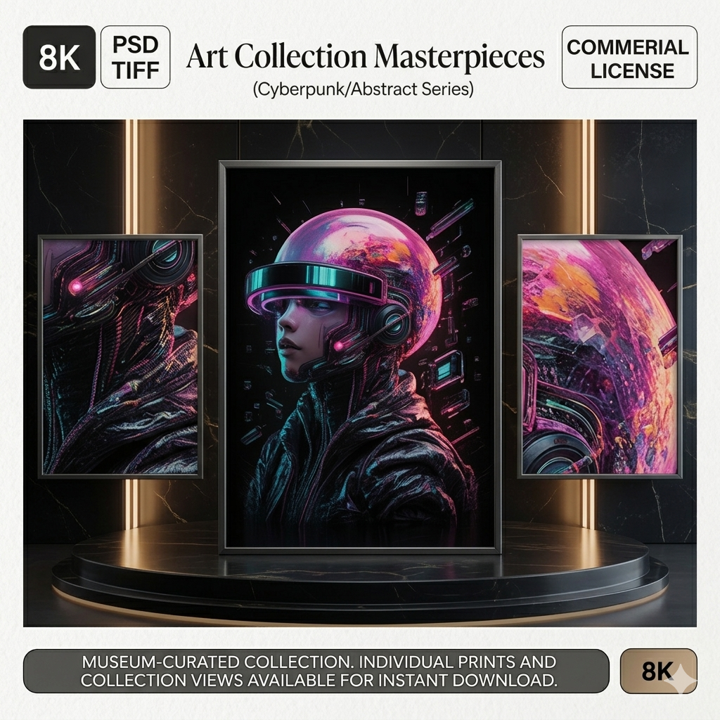 A high-end cyberpunk abstract artwork designed for designers and creators who need bold, futuristic visuals with full creative control.