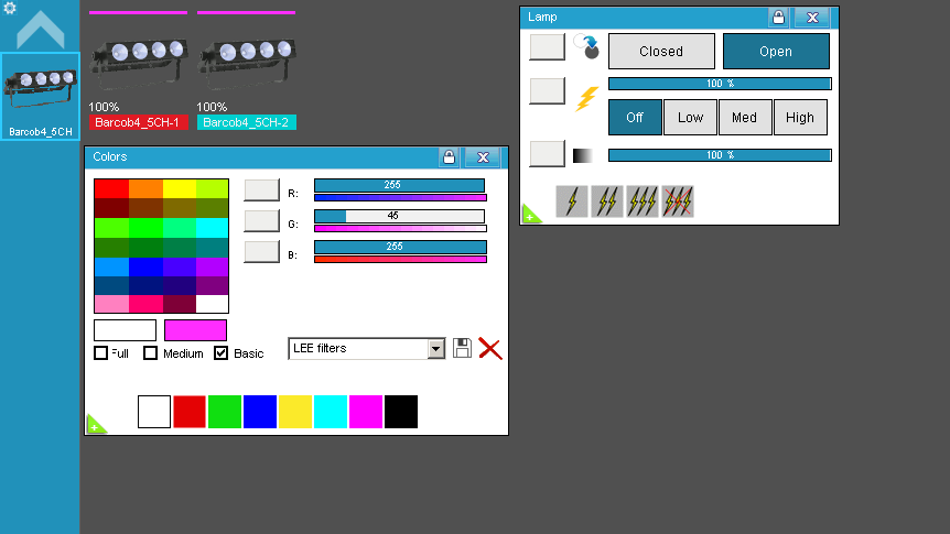 - Flash full directo en 3 velocidades (desde un ícono coloca todos los leds al máximo, el dimmer al máximo y realiza flash).