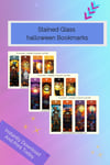 12 Printable Halloween Stained Glass Bookmarks | Printable Halloween Stain Glass Page Holders | 12 Halloween Scenery Bookmarks | Halloween Gift For Readers