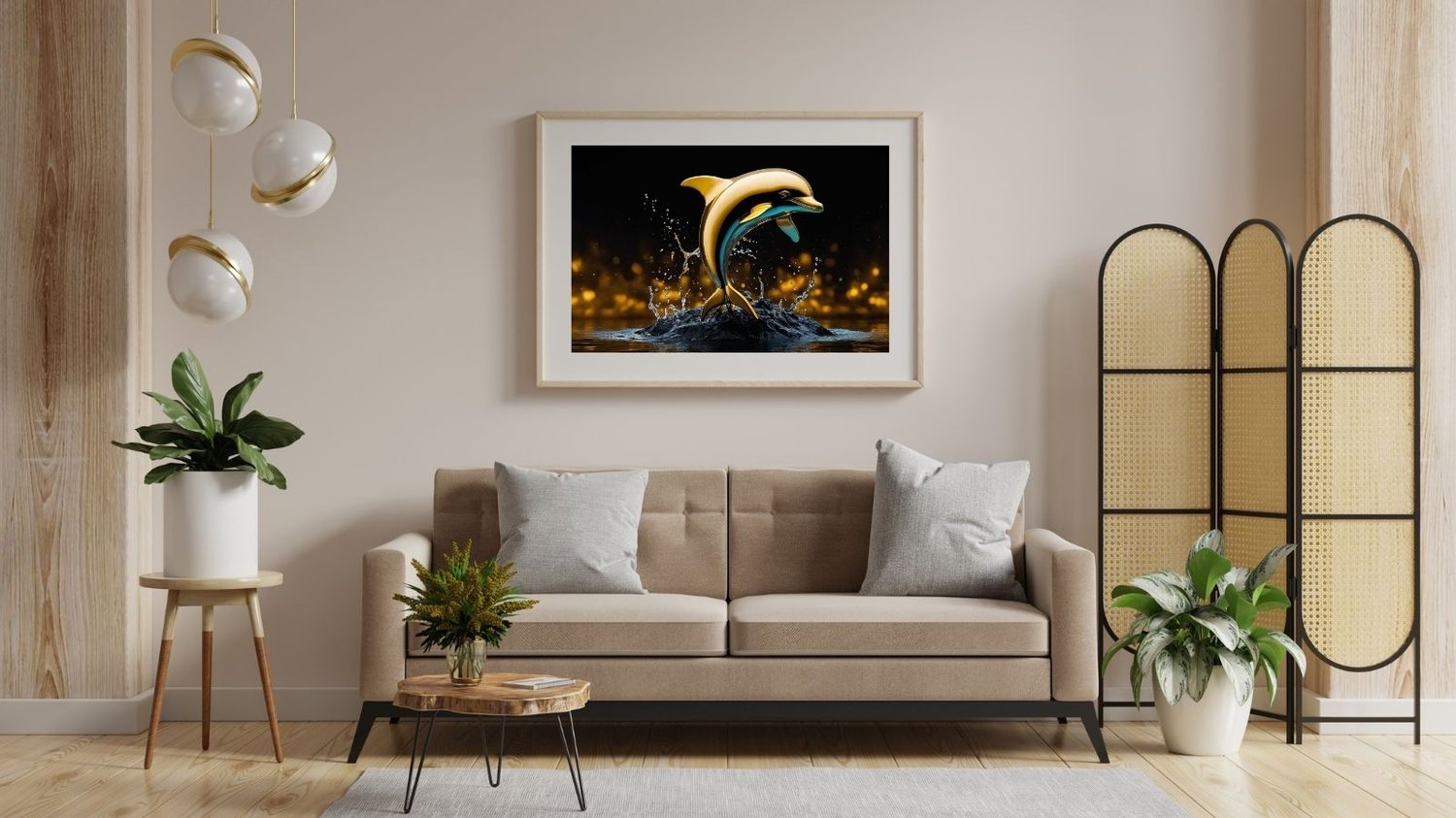 Golden Dolphin Wall Art – Modern Sea Life Print