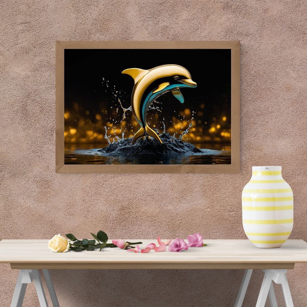 Let the joyful spirit of the dolphin bring light and calm into your home. This Golden Dolphin Wall Art was created to capture the playful energy of the ocean while adding a touch of elegance with its golden shimmer. Every time you look at it, you’ll be reminded of the sea’s gentle rhythm and the sense of peace it brings. This artwork isn’t just decoration. It is a little piece of the ocean you can carry with you, no matter where you live.