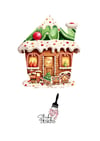 A Magical Christmas Toy Shop, the door has a sign above it, with a space which has been left for you to personalise. you will get 2 designs one for the house with stand & also the hanging house