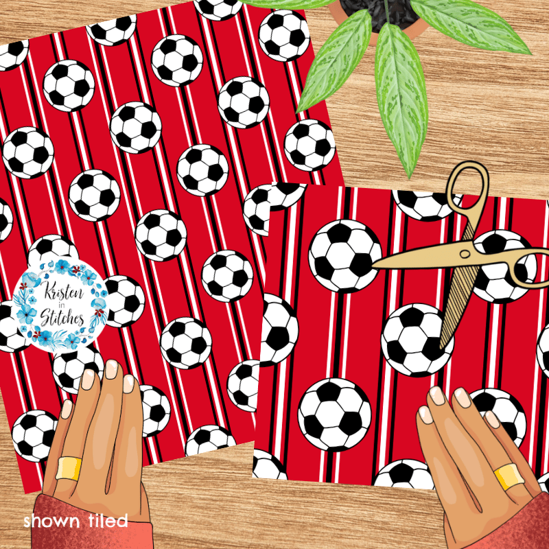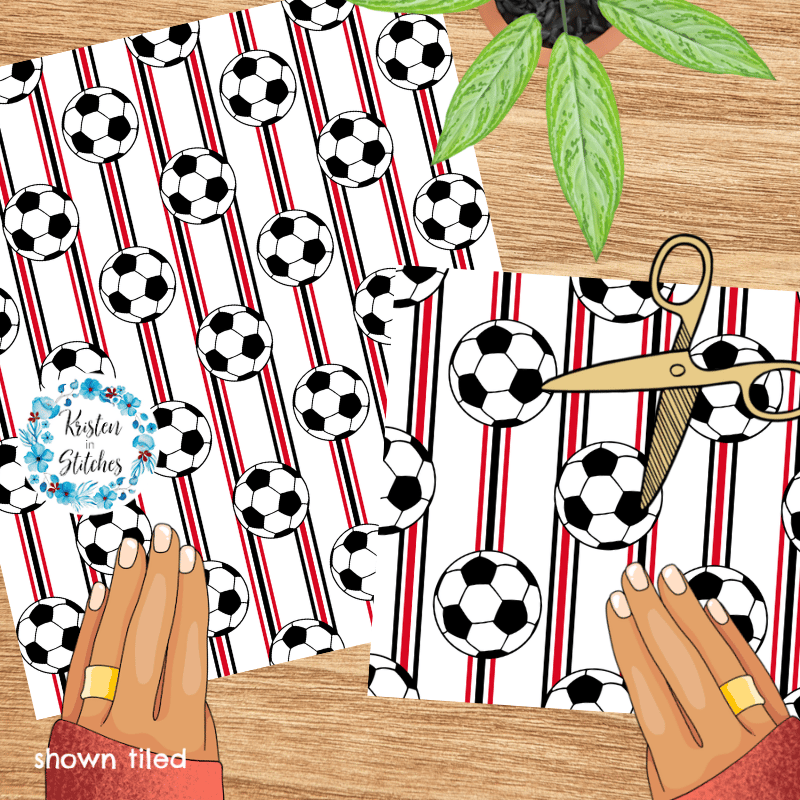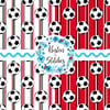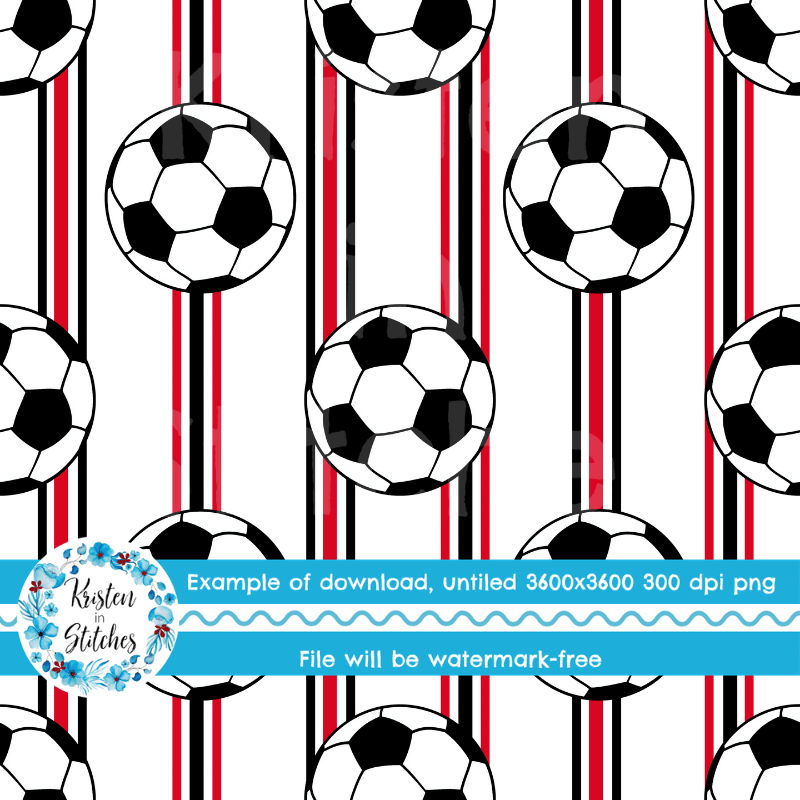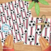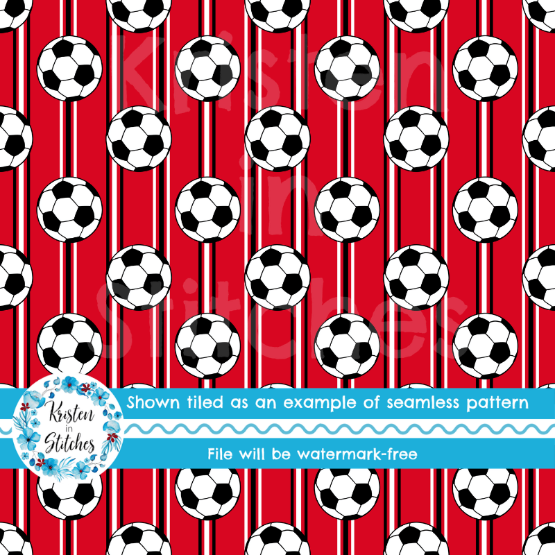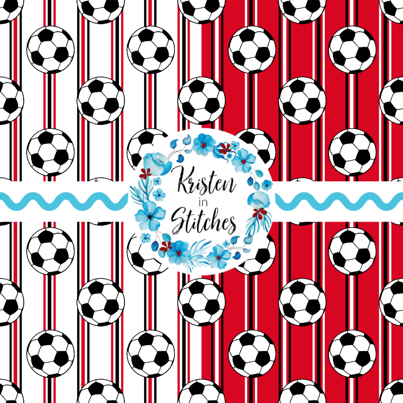 Soccer Ball Sporty Stripes Seamless Pattern Set, Red Black White