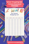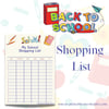 Shopping List For Back To School ~ Instantly download this back-to-school shopping list. The print itself is on a 8.5 x 11 inches page (which is a regular size paper typing paper).