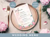 Rose Wedding Menu Template Editable Pink Floral Menu For Spring Wedding Dinner Bridal Shower Party Printable Reception Meal Display 003