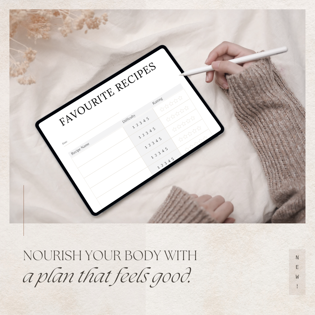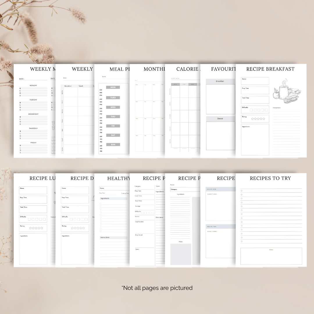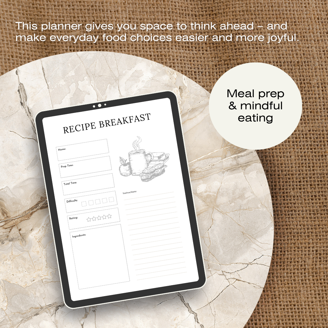 This 25-page Meal Planner helps you bring structure and ease into your weekly meals. Whether you're planning ahead, tracking recipes, or just trying to eat more mindfully – this template supports you in a calm and organized way.