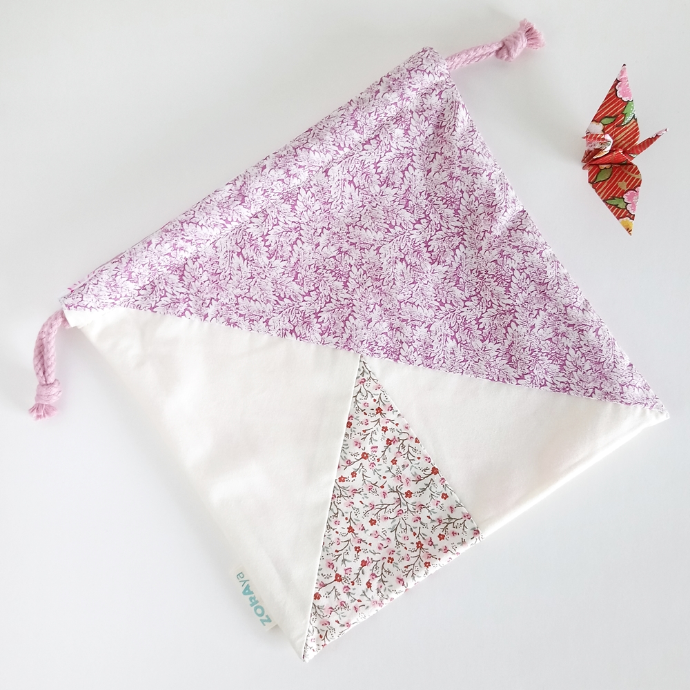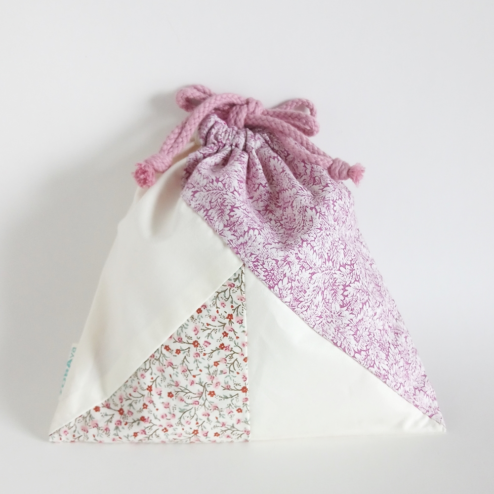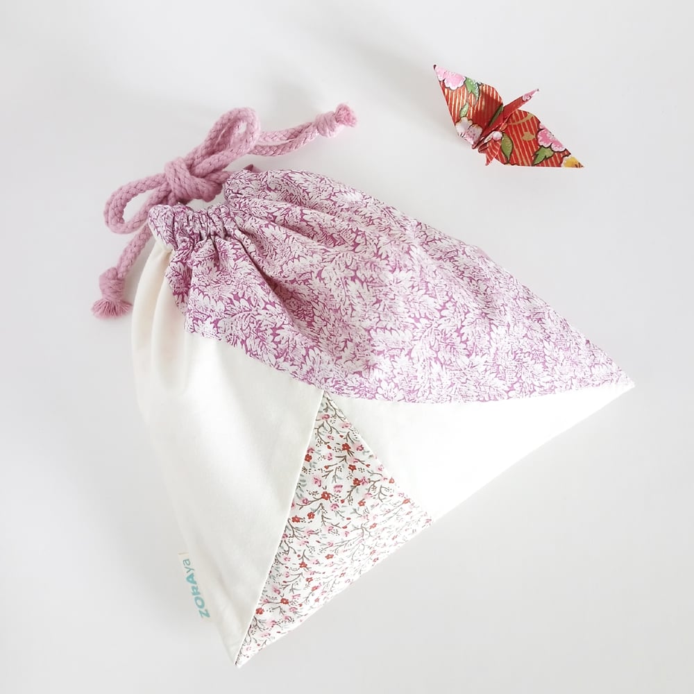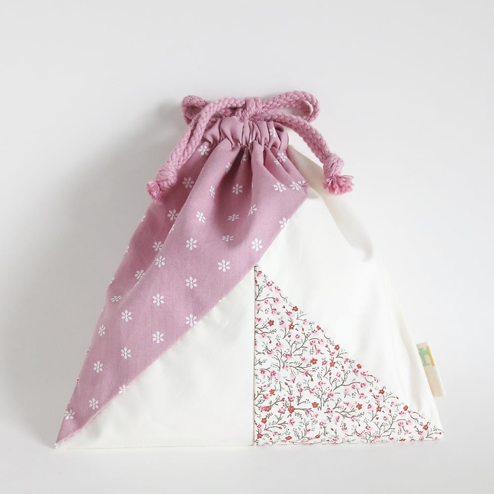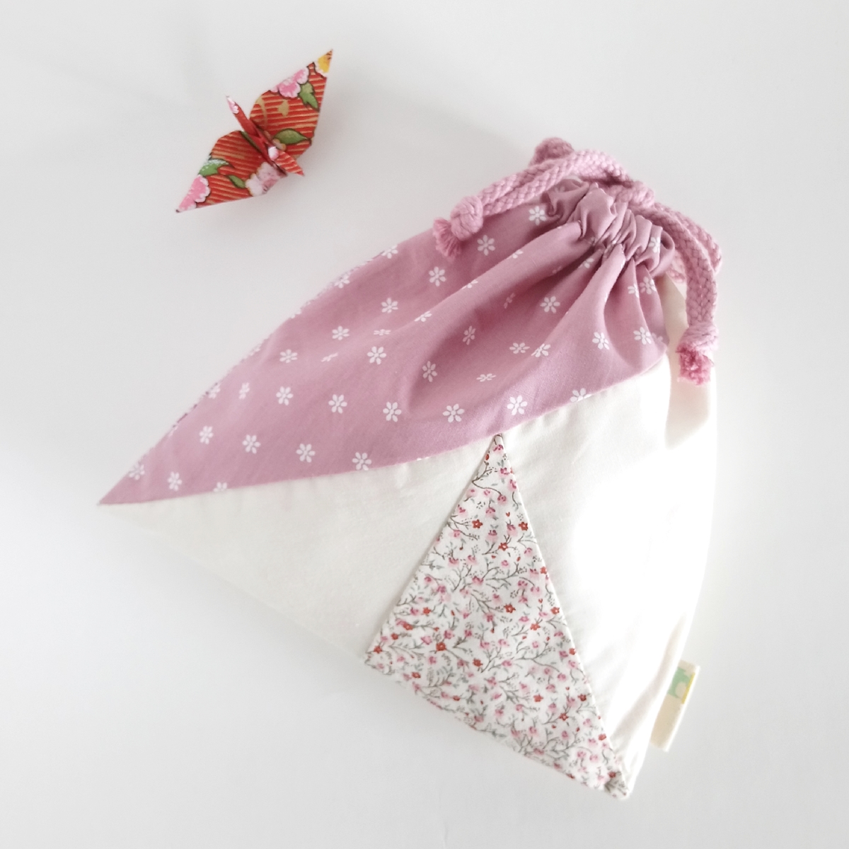 Japanese-style Patchwork Drawstring Bag (Lined ‧ Pink drawstring)
