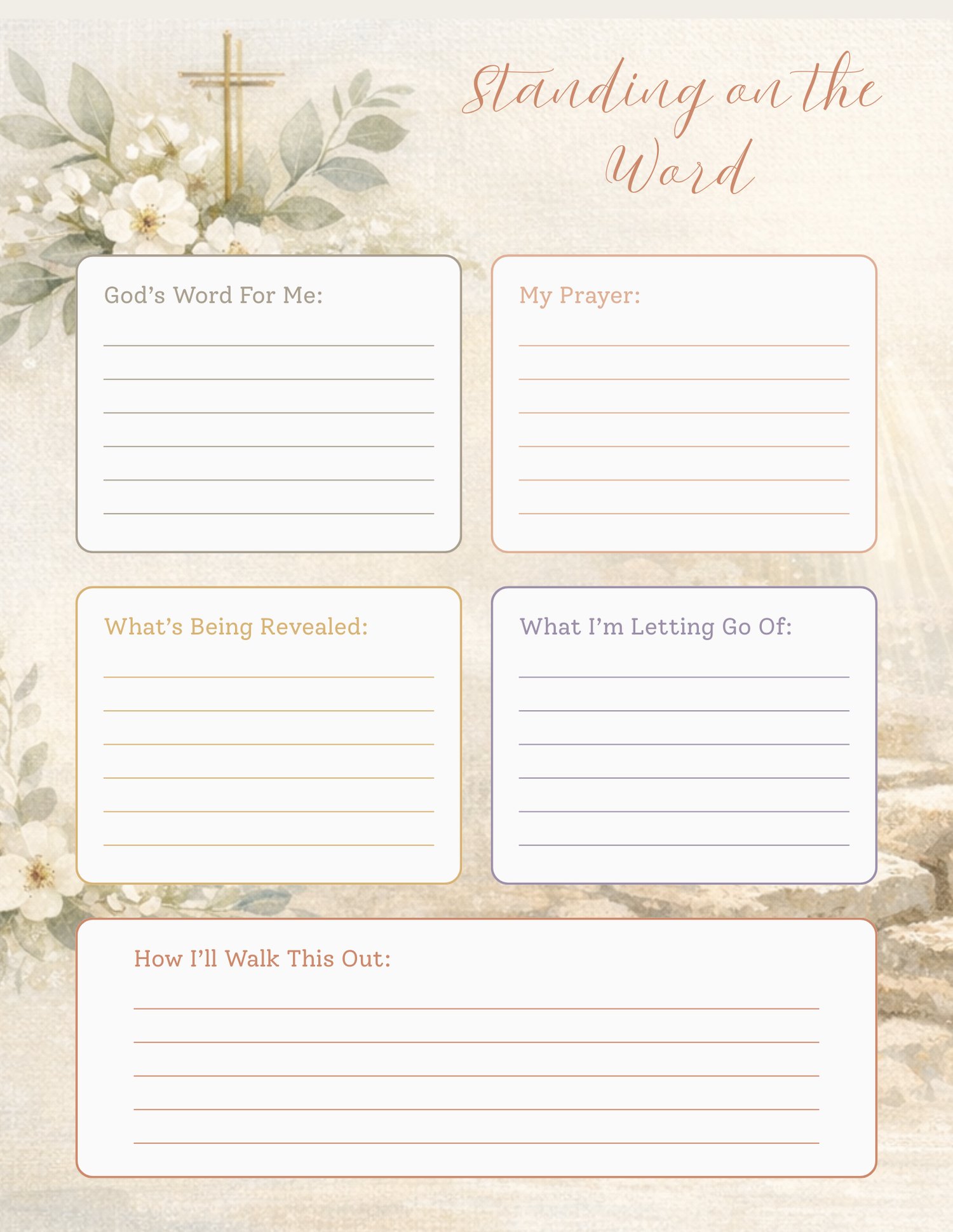 - Faith Insert titled Standing on the Word, designed with lined sections and perfect for front-and-back printing
