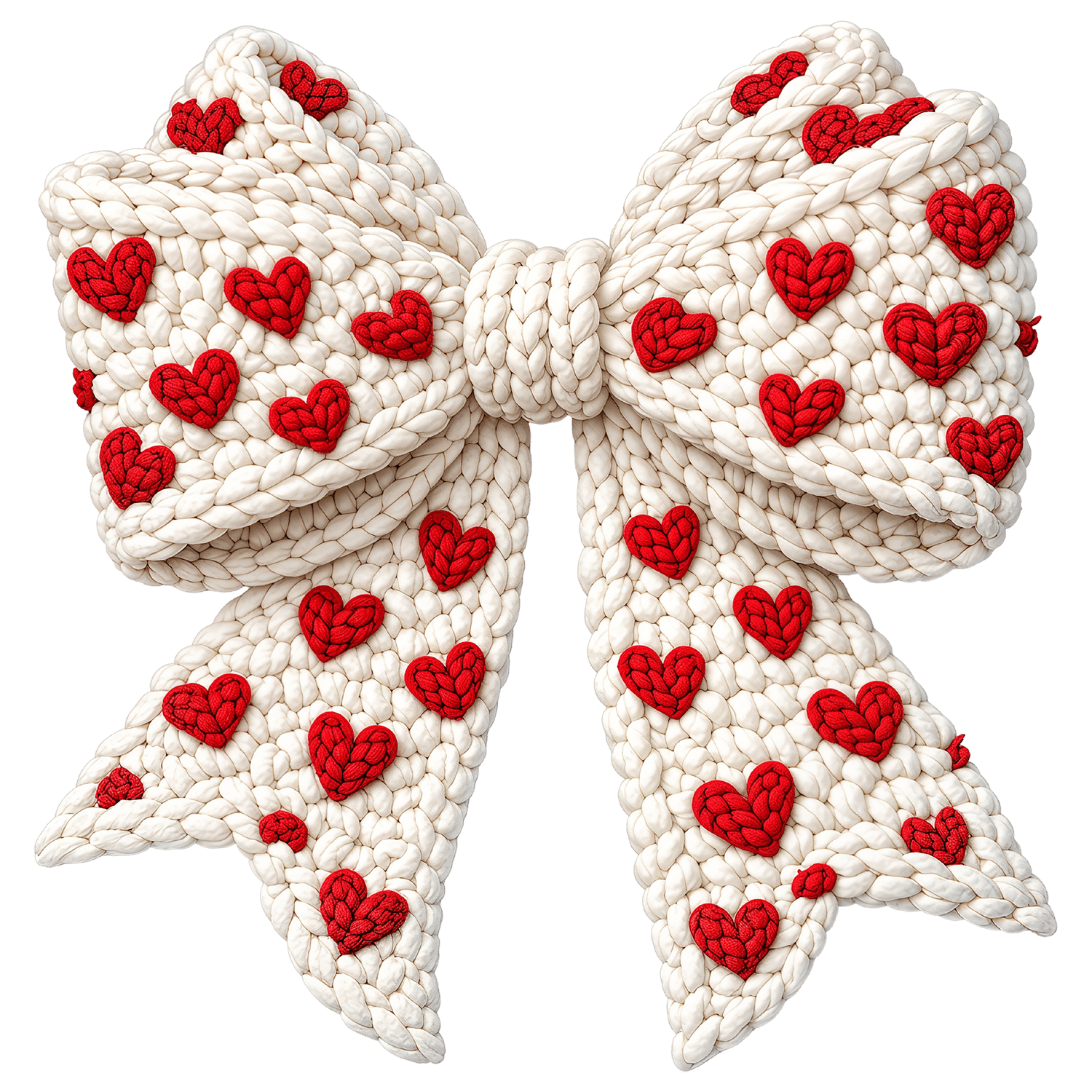 A faux crochet bow perfect for Valentine's Day. Great for purses, tee shirts, bags and other items.