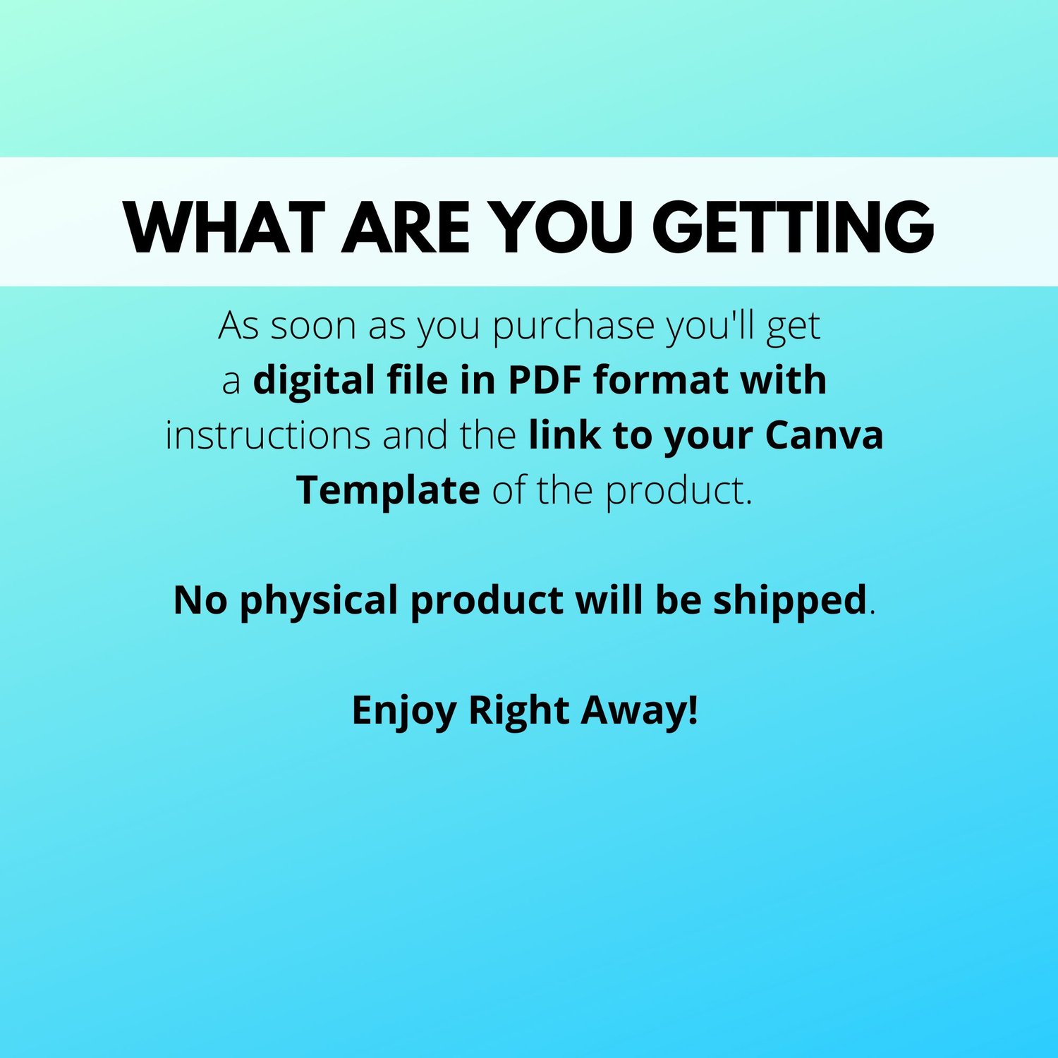 👉🏻After payment is processed, you will receive 1 PDF File containing a delivery letter with the link to your products, helpful instructions for Canva, and product license.