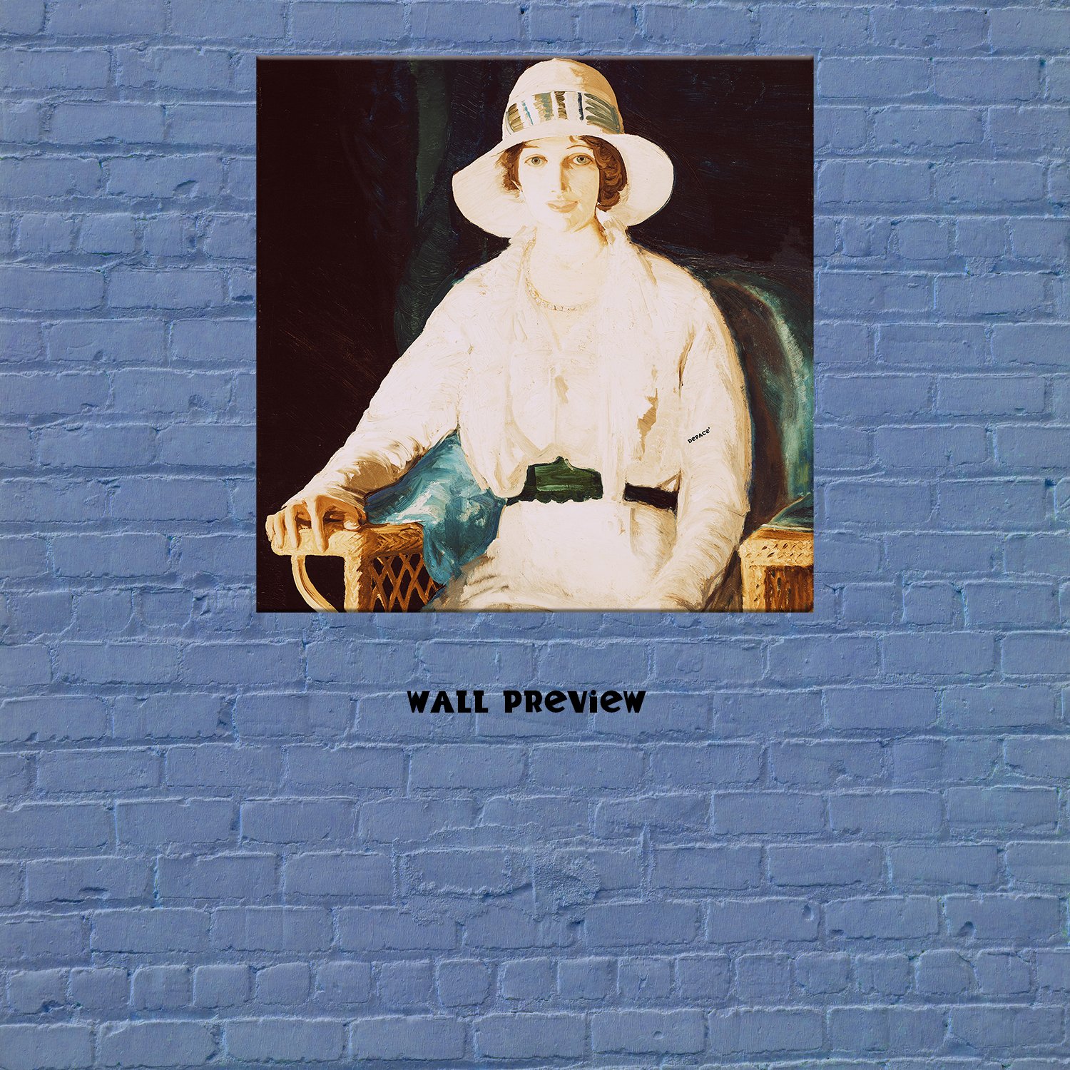 An elegant oil painting capturing Miss Florence seated gracefully in a wicker chair, her poise and gentle expression reflecting the quiet sophistication of 1914—where timeless beauty meets the soft warmth of brush and light.
