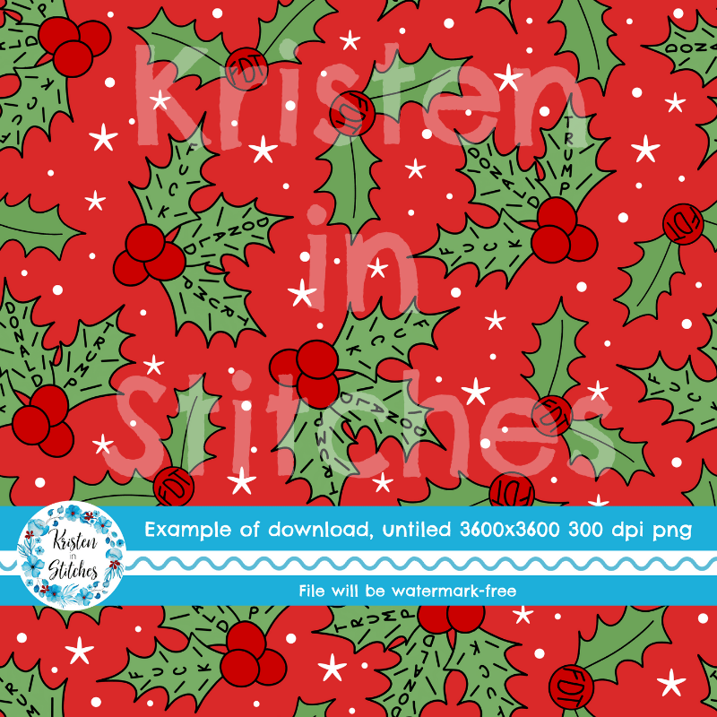Subtle Winter Holly Berries Fuck Trump Sarcastic FDT Seamless Pattern, Christmas