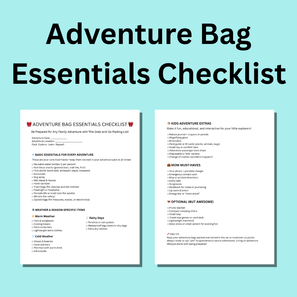 Always be prepared for any adventure with your kids with this Adventure Bag Essentials Checklist. It includes all common items you'd need in your adventure bag, and leaves room for things you'd like to add.
