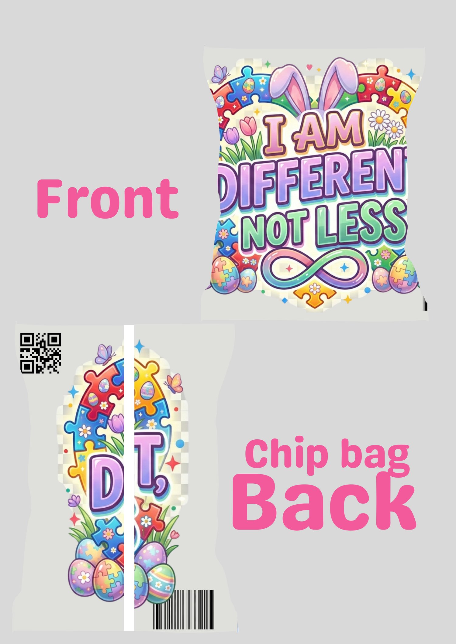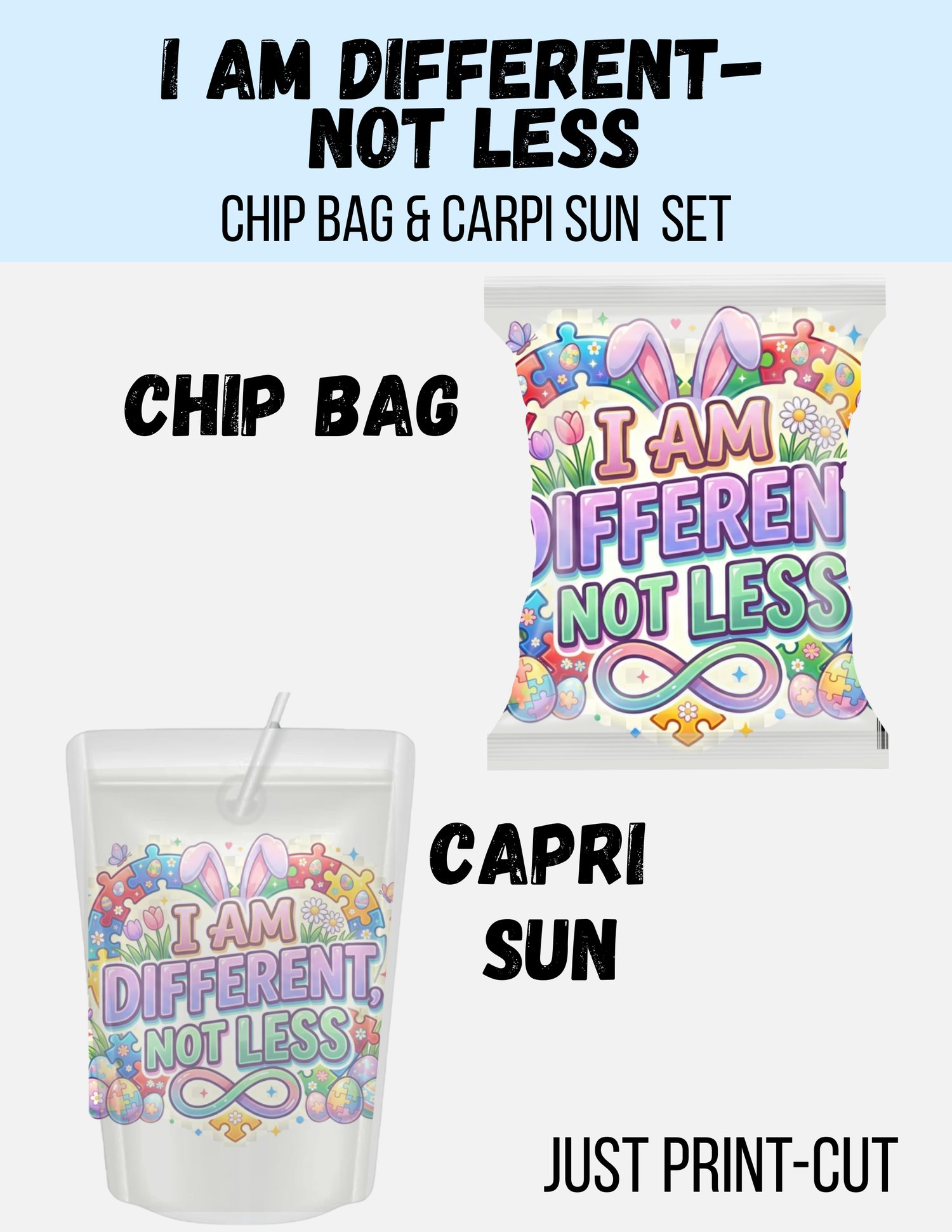 Easter Autism Favor Labels, Chip Bag & Capri Sun, I Am Different Not Less