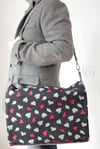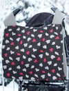 This is a very flexible pattern. The Dakota bag is perfect for use with wheelchairs, other mobility aids and strollers. The detachable shoulder strap allows you to make a traditional messenger bag without the handles on the back, or to convert the bag from chair to shoulder carry. It is also a perfect diaper bag. The approximate finished dimensions are 17" x 13". The two gusset pockets are large enough to hold a 4" x 6" phone for easy access. The generous pockets on the exterior and interior will keep the contents secure. Make the bag any of the following ways: 1) Flap, recessed zipper, detachable shoulder strap. 2) Flap, detachable shoulder strap 3) Recessed zipper, detachable shoulder strap 4) Flap, recessed zipper, 5) Flap, handles for hanging (with or without the shoulder strap) 6) Recessed zipper closure, handles for hanging (with or without the shoulder strap)