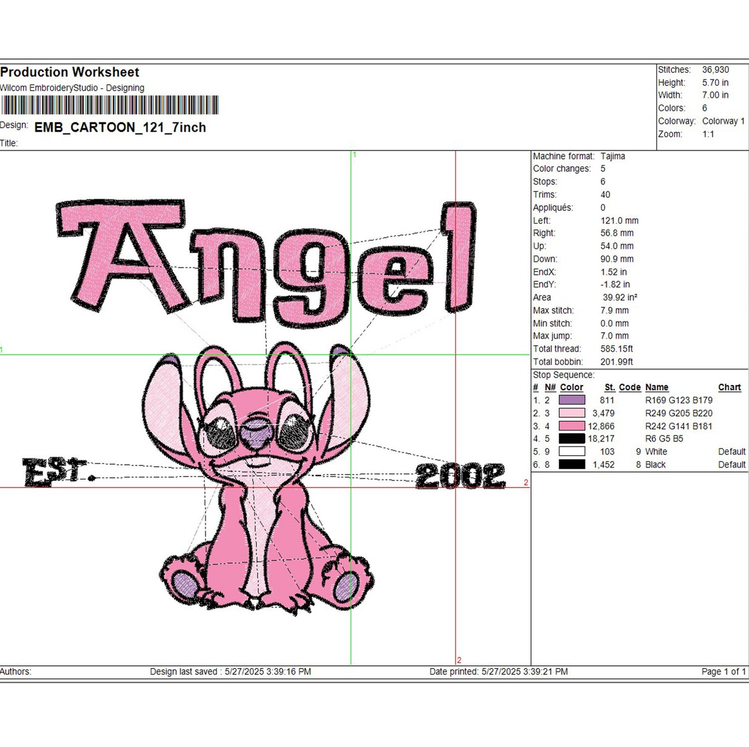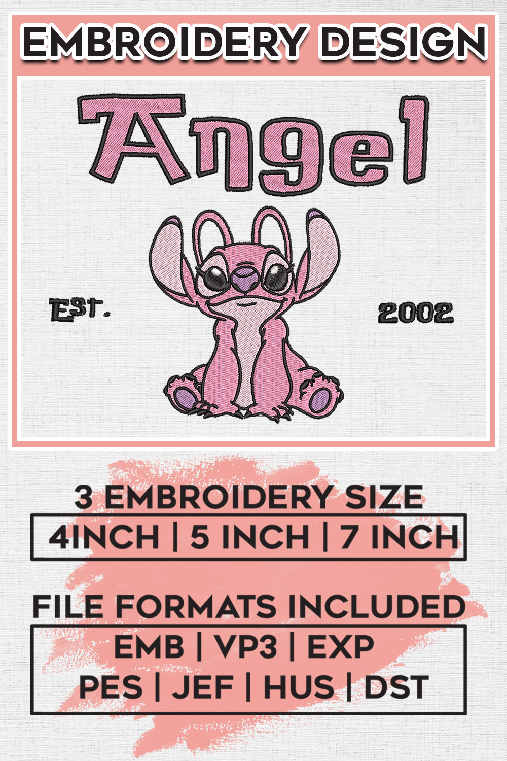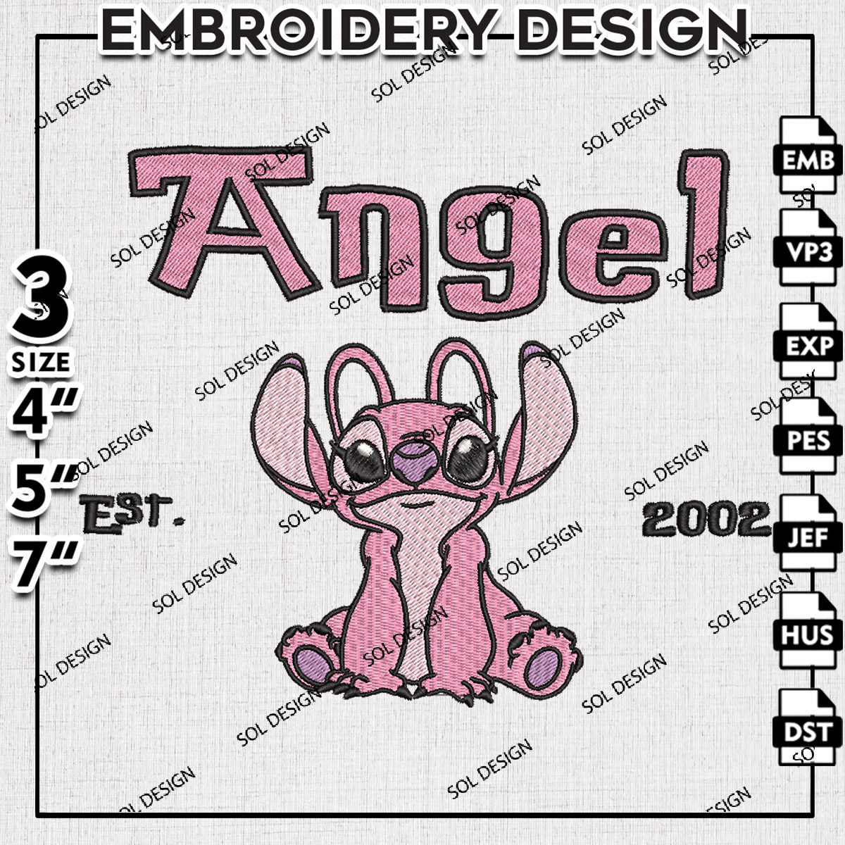 Angel Stitch Girlfriend Est 2002 Embroidery Designs, Lilo and Stitch Machine Embroidery Files, Cartoon Character Machine embroidery designs, Disney, 3 sizes, Digital Download