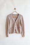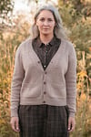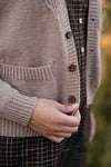 This buttoned, v-neck cardigan with pockets is a classic shape that can be worn by anyone. Leila’s thoughtful details—the half-twisted rib on hem, cuffs, pocket trim, and button bands, and the cascading cable motif at the fronts—set this piece apart. The cardigan is worked from the bottom up with top-down, set-in sleeves. A wardrobe staple for transitional weather.