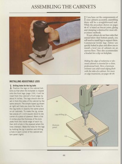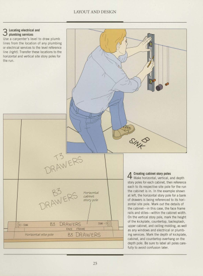 Offers illustrated step-by-step instructions for designing, constructing, and installing kitchen cabinets and countertops