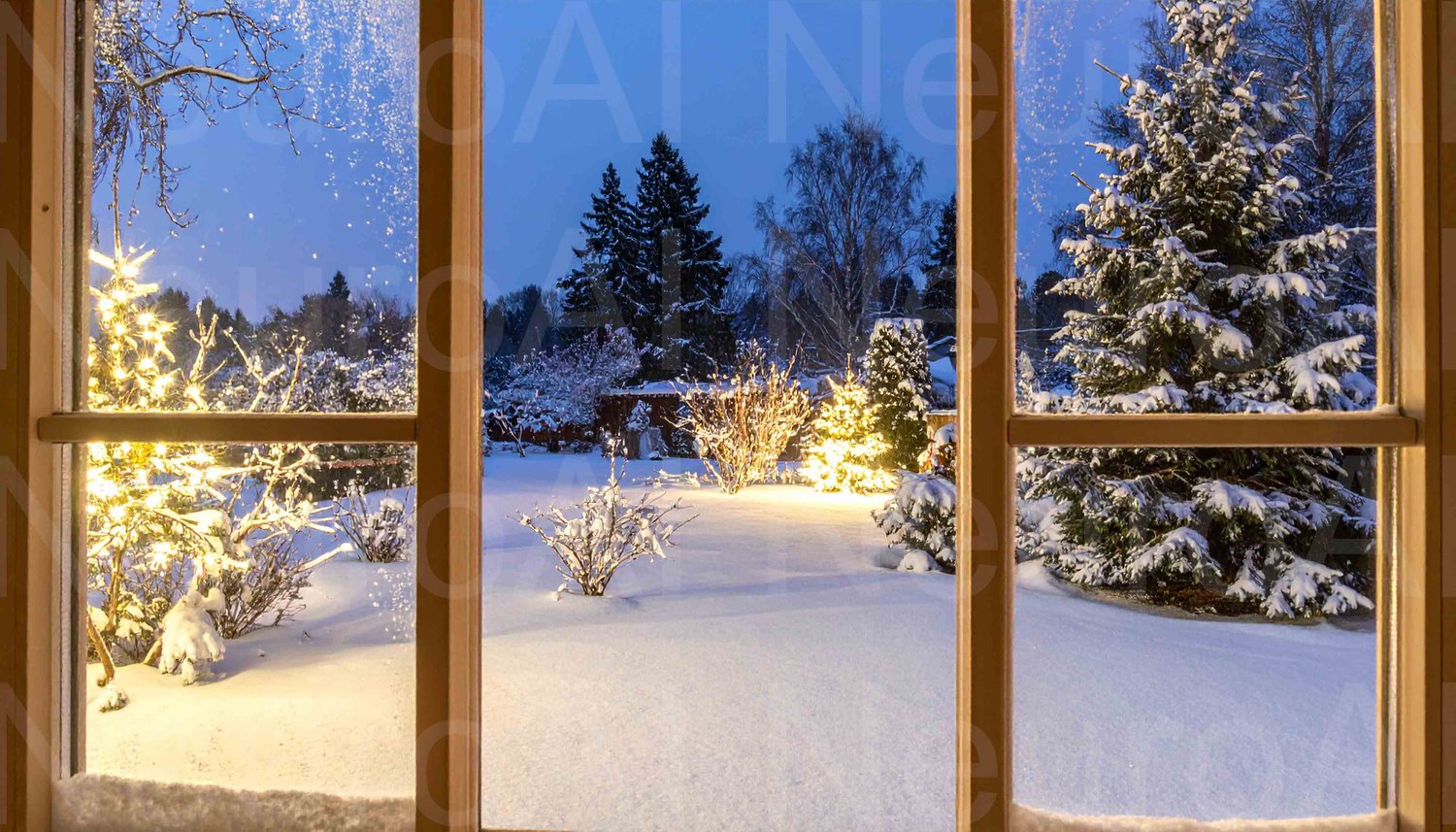 Magical winter wonderland view from a cozy window