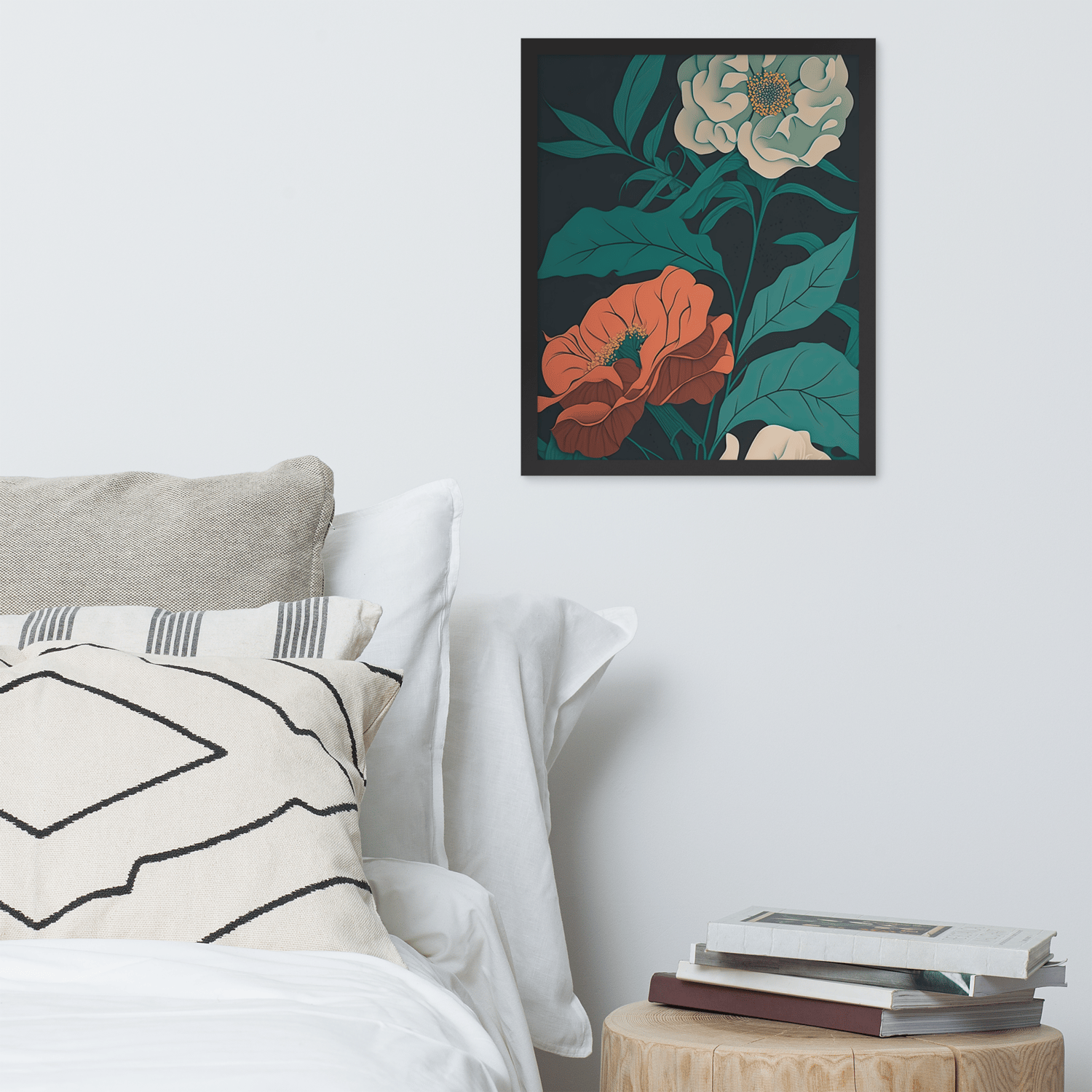 Bring the beauty of nature indoors with this striking illustration of red and white peonies against a deep navy blue background. This high-quality digital file captures every intricate detail and bold color contrast, making it a stunning addition to any digital art collection. Print it yourself or use a professional printing service to display it in your home or office.