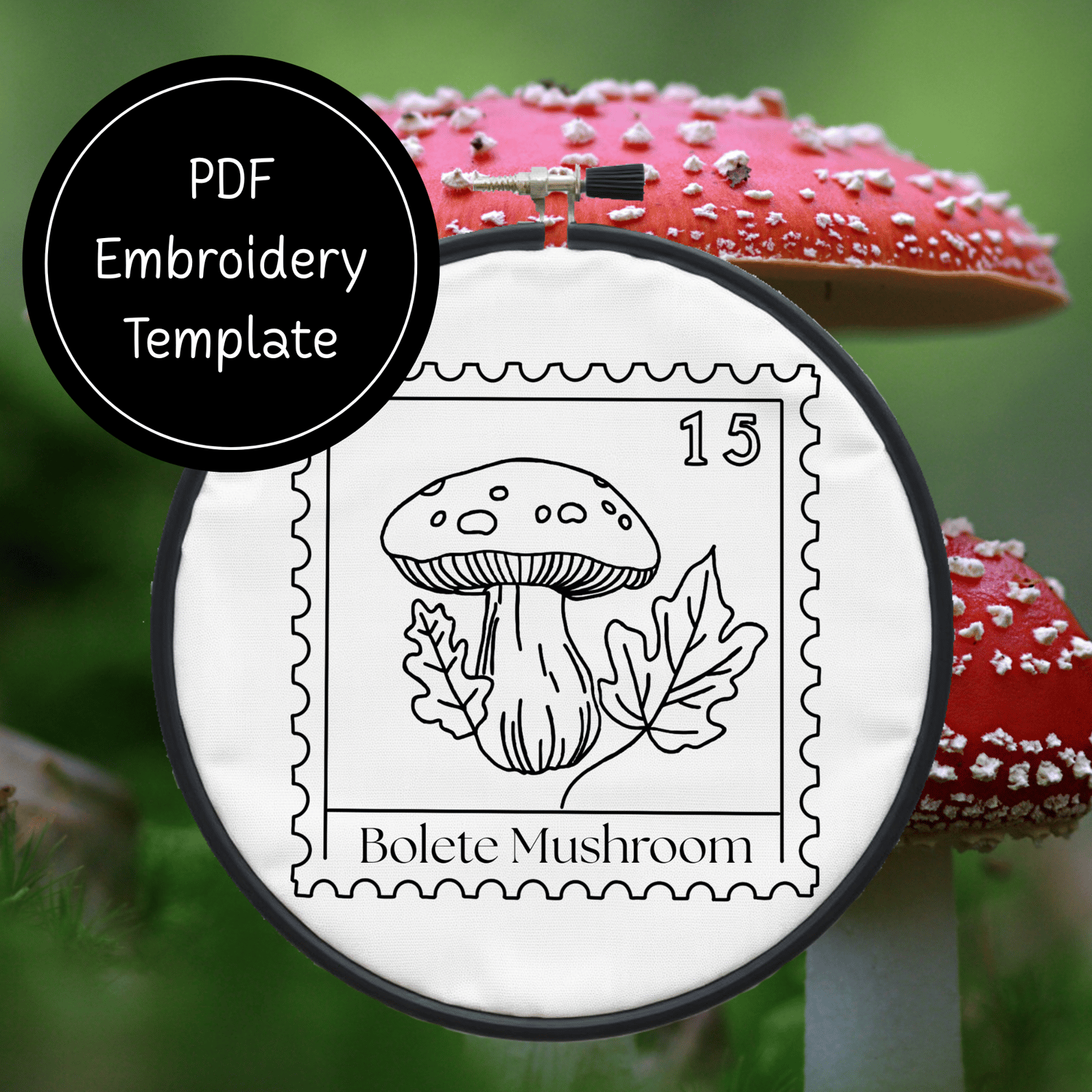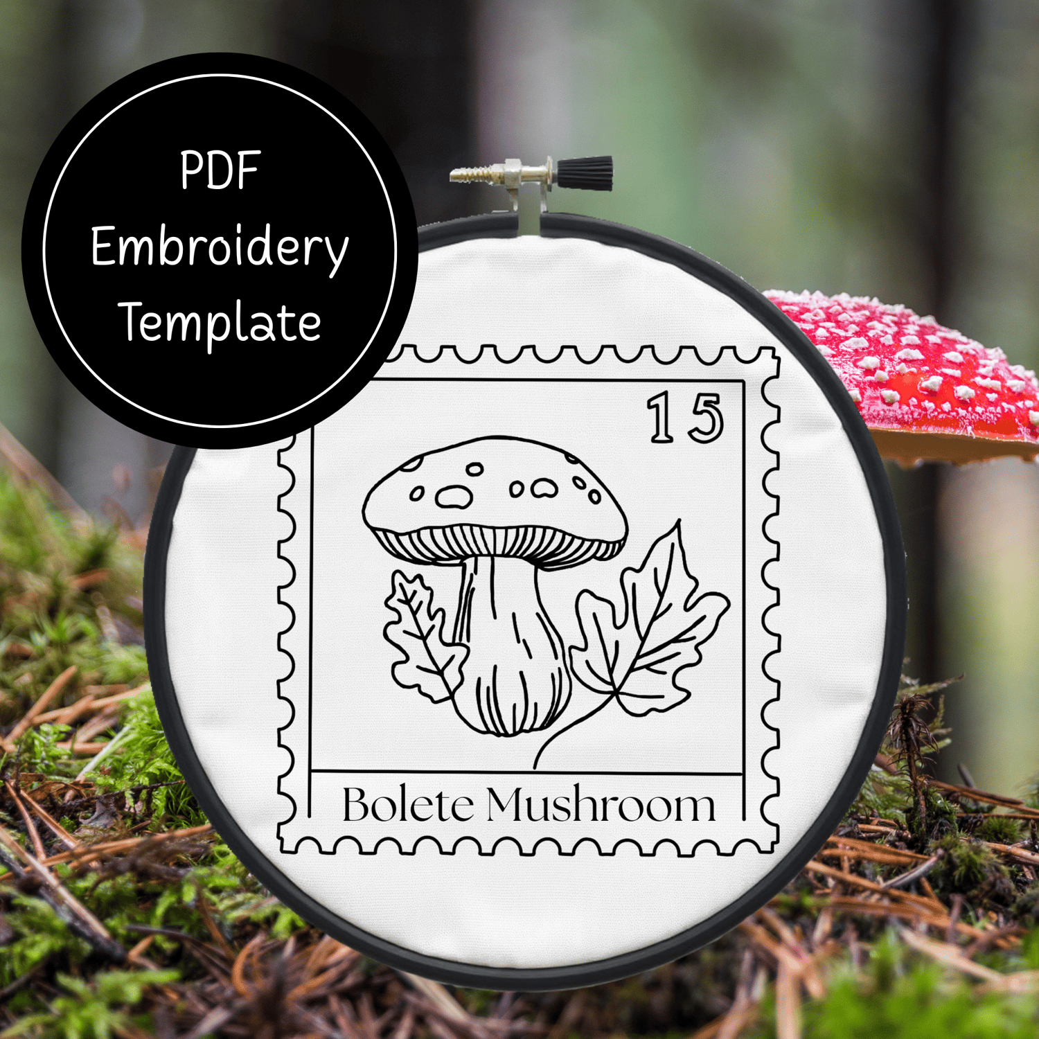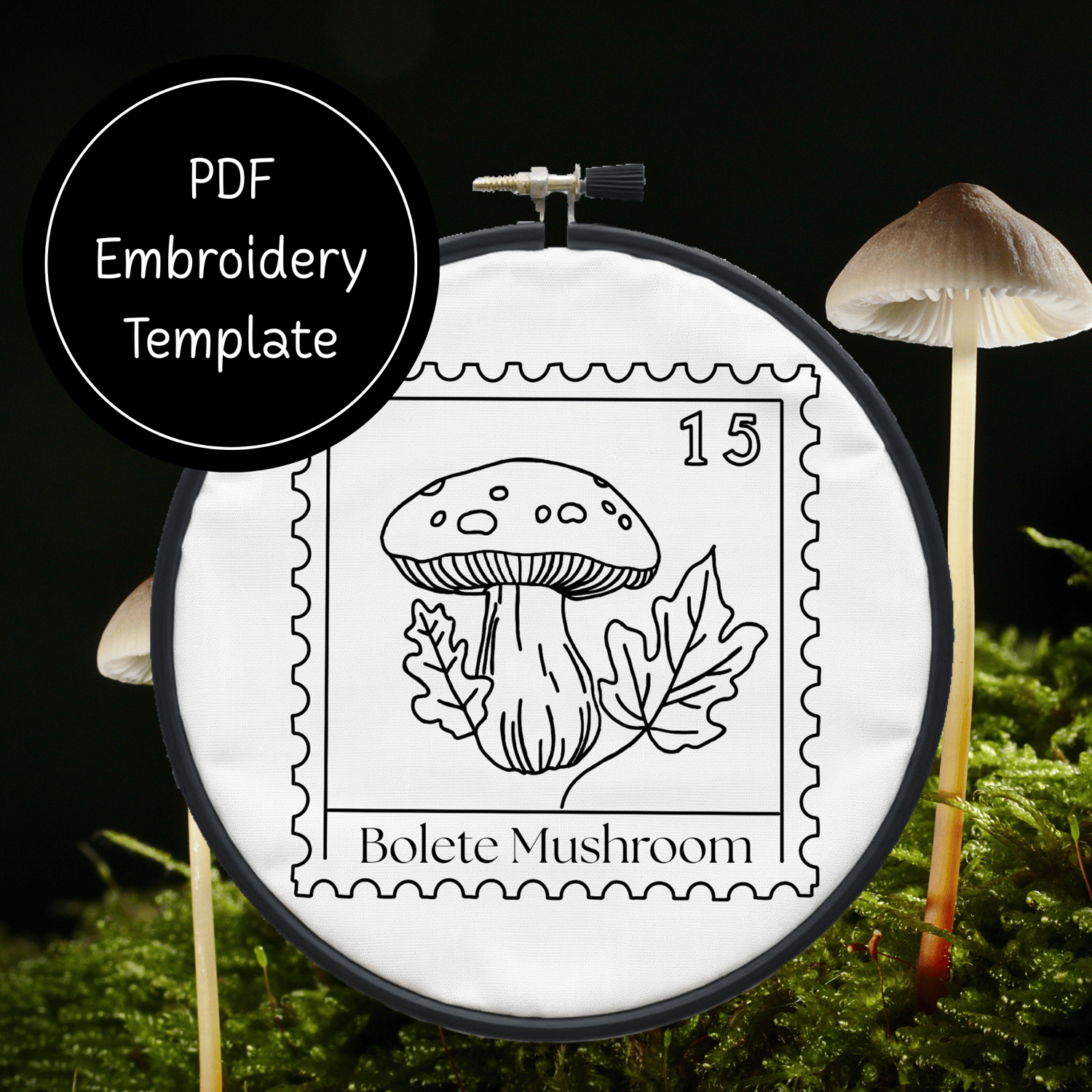 Bolete Mushroom Stamp Embroidery Template PDF - DIY Fungi Design For Hand Stitching - Instant Download