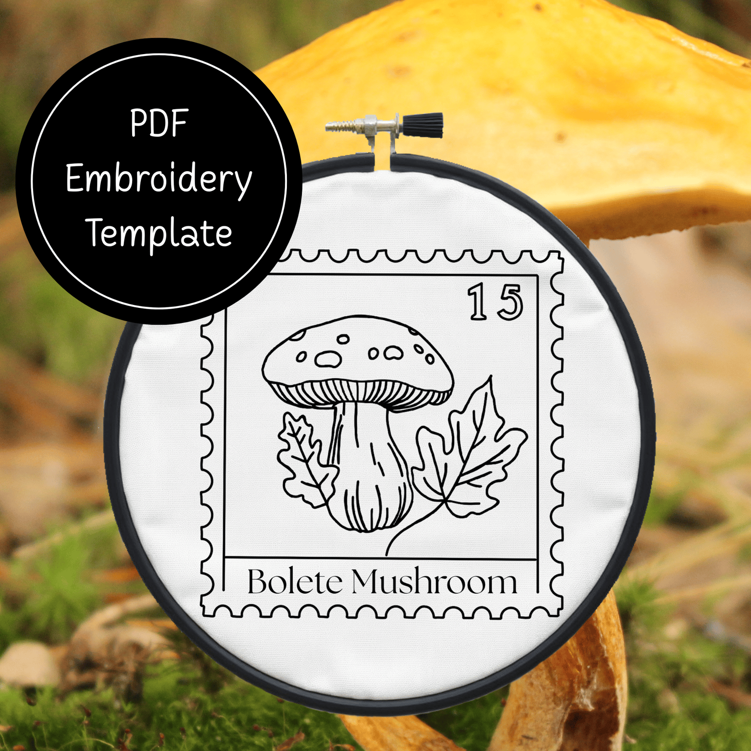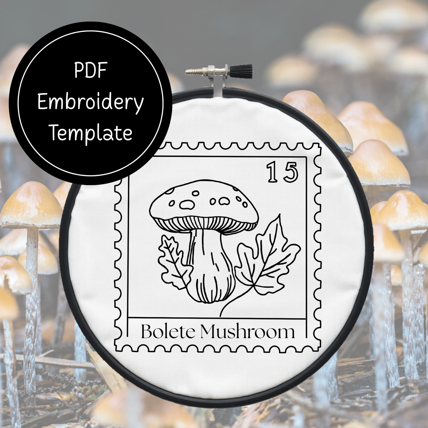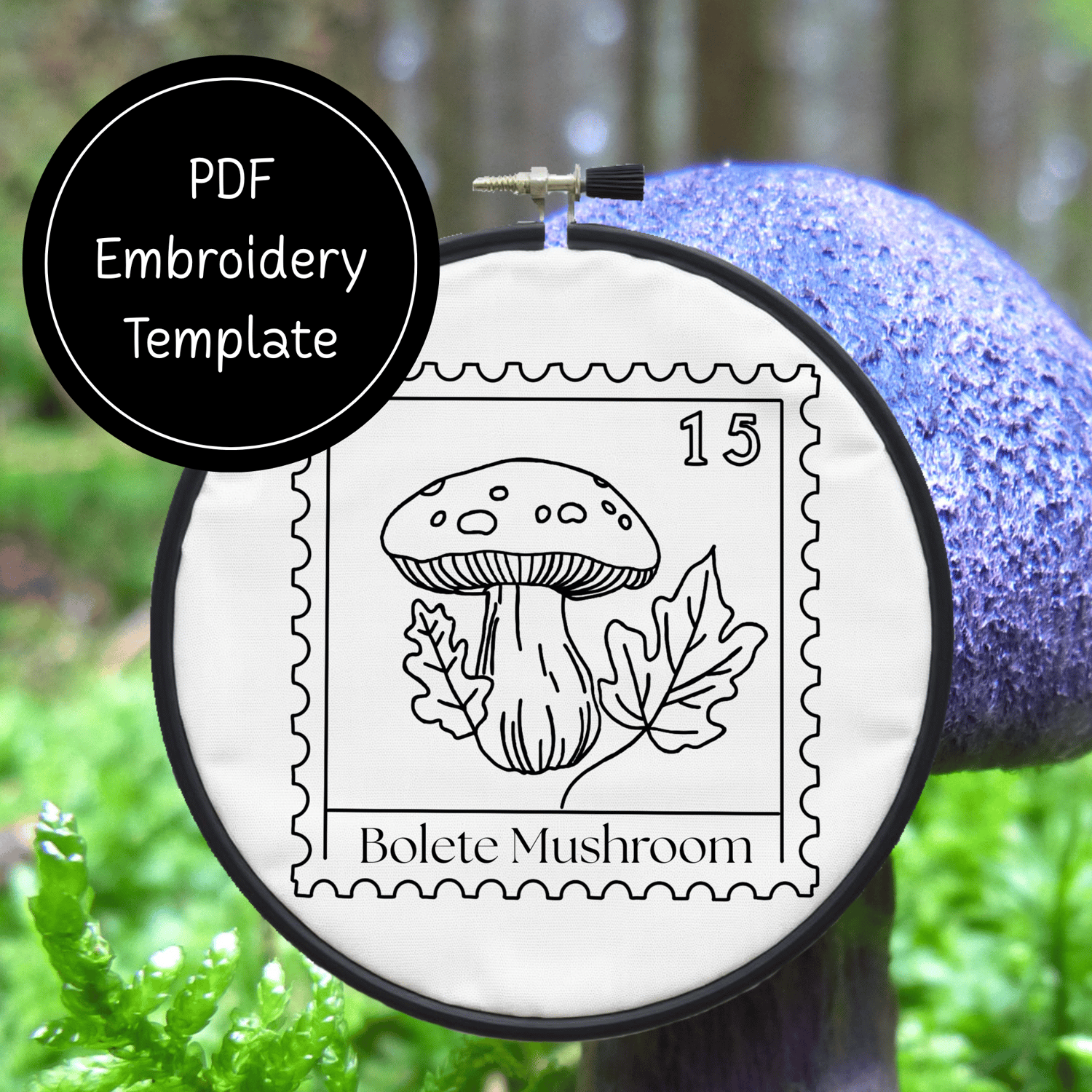 Bolete Mushroom Stamp Embroidery Template PDF - DIY Fungi Design For Hand Stitching - Instant Download